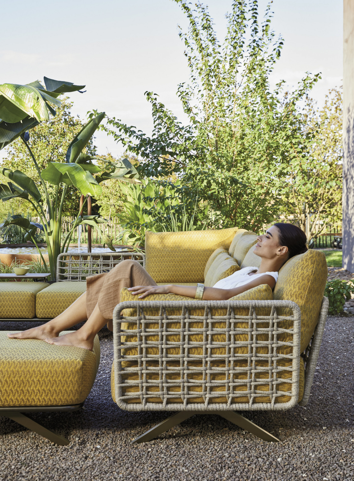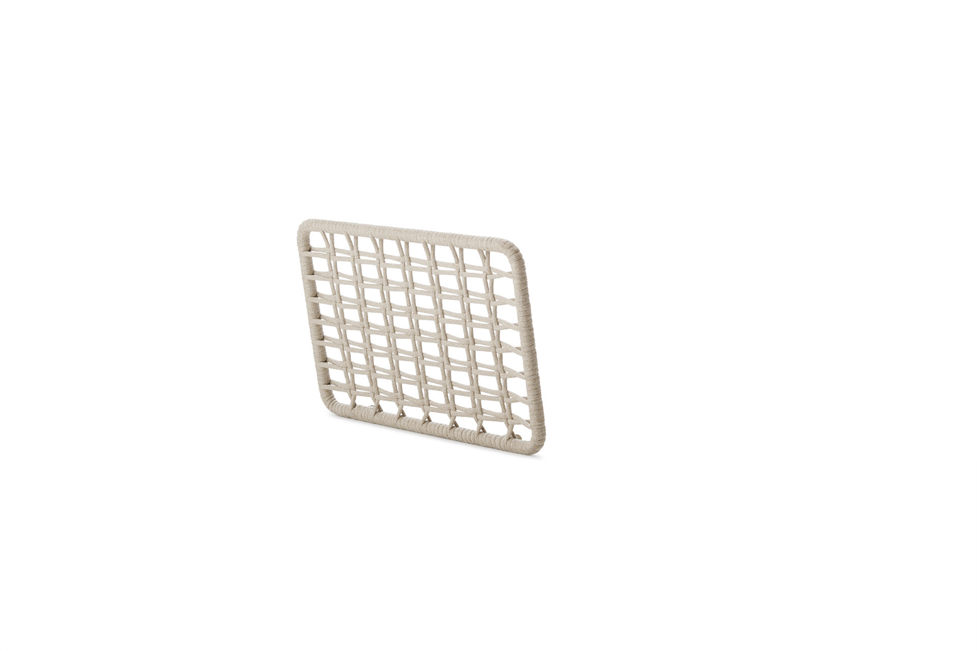 Bracciolo in acciaio inox Aisi 304 verniciato a polveri, intrecciato in Oval Trendyrope. Elemento componibile della linea Armàn, il cui intreccio in corda conferisce un tocco di artigianale raffinatezza ai divani, alle poltrone, alle chaise longue e daybed che compongono la collezione. Un dettaglio che costituisce non solo un elemento visivamente affascinante, ma offre anche un comfort ergonomico e un sostegno accogliente.