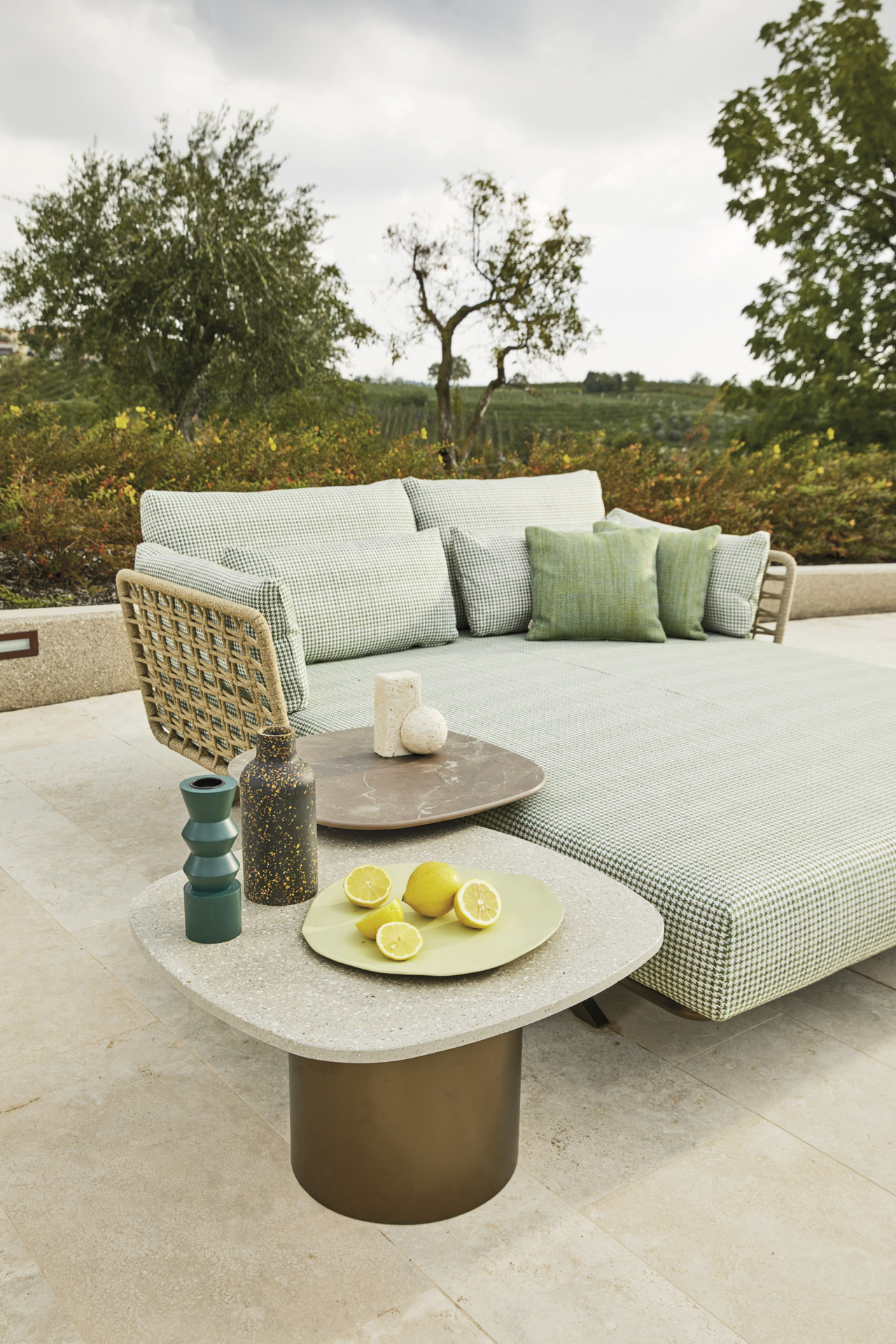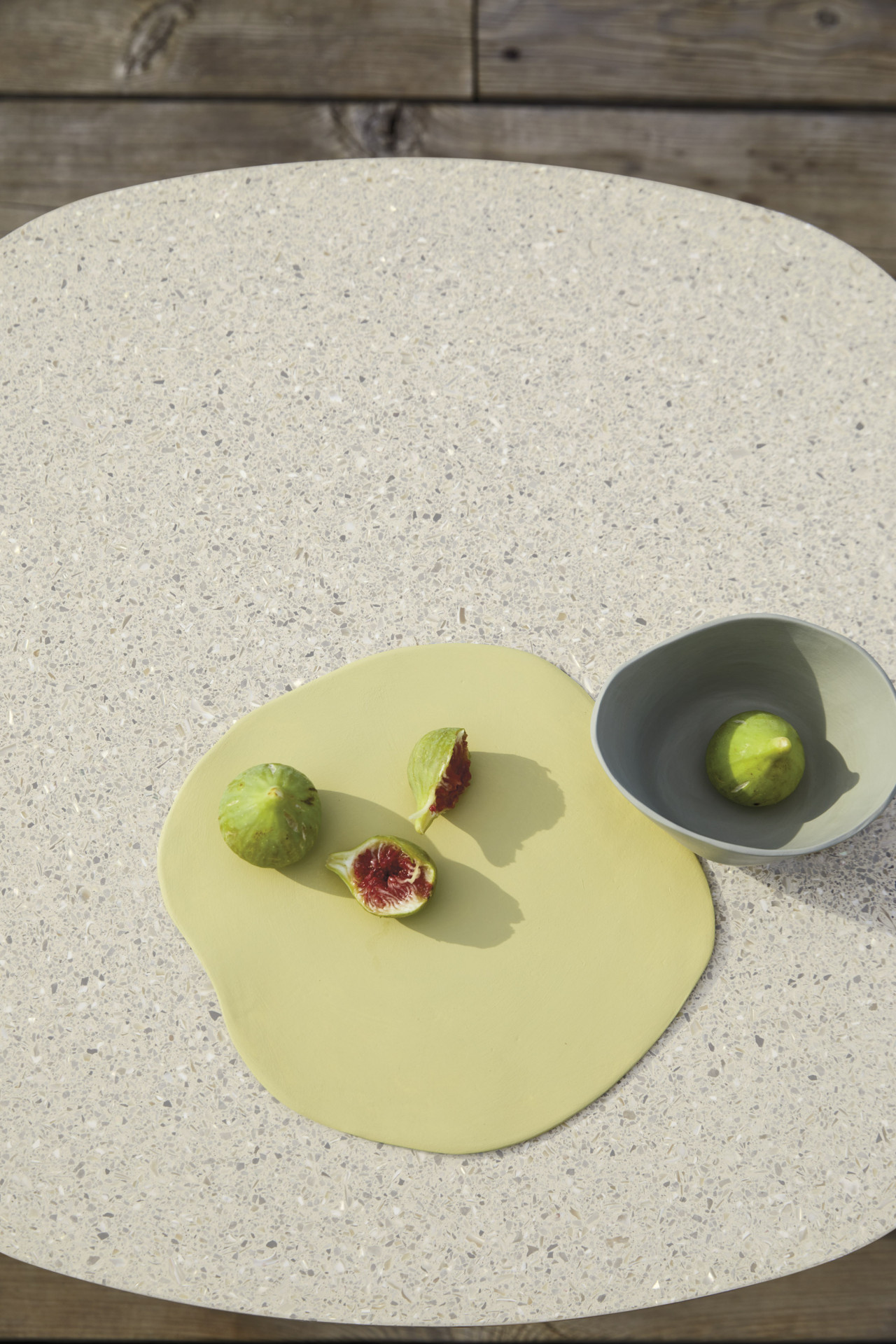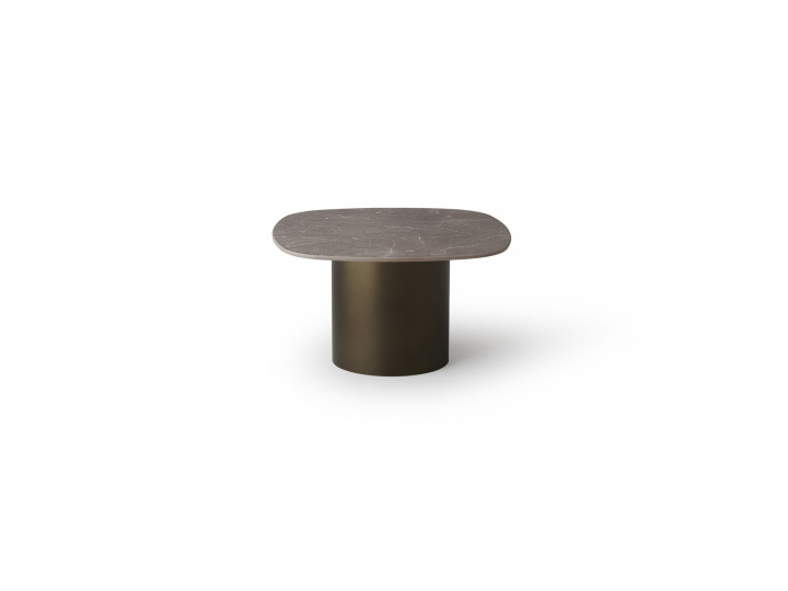Tavolino basso in lamiera di acciaio inox Aisi 304 verniciata a polveri con base rotonda (cilindrica) e top in HPL. Ispirato all'architettura contemporanea, il suo design minimalista esprime uno stile moderno ed armonico ed è adatto sia per esterno che per interno, residenziale e contract.