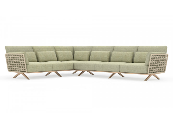 Divano in acciaio inox Aisi 304 ed alluminio verniciato a polveri ed  intrecciato in Oval Trendyrope. Linee che valorizzano l'iconico stile italiano, dove le lavorazioni in corda donano un'estetica materica ed artigianale alla morbidezza avvolgente delle sedute, per concepire uno spazio ideale, dedicato al relax e alla socializzazione. Progettato sia per l'arredamento residenziale che contract, outdoor e indoor.