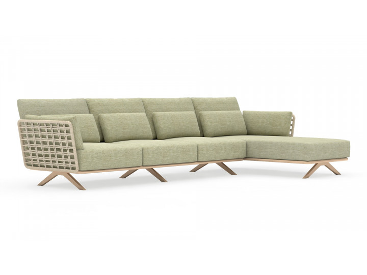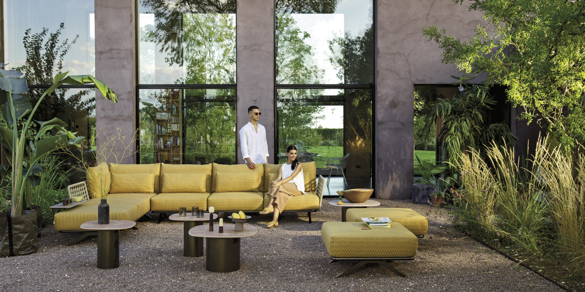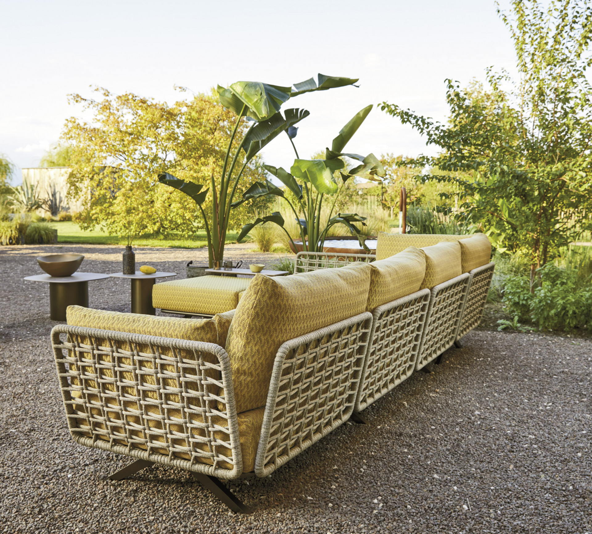 Divano in acciaio inox Aisi 304 ed alluminio verniciato a polveri ed intrecciato in Oval Trendyrope. Linee che valorizzano l'iconico stile italiano, dove le lavorazioni in corda donano un'estetica materica ed artigianale alla morbidezza avvolgente delle sedute, per concepire uno spazio ideale, dedicato al relax e alla socializzazione. Progettato sia per l'arredamento residenziale che contract, outdoor e indoor.