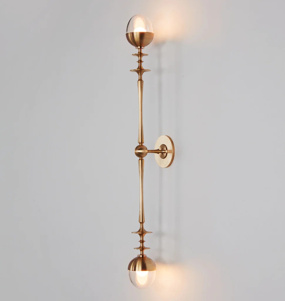 Inspired by summers spent at Helgerson’s ancestral home in Lyon, France, Rue Sala takes its form from the elegant interiors filled with thin Louis XVI furniture, bronze statuettes, and silky fabrics. Translated into turned metal and hand blown glass fixtures, Rue Sala is a delicate and refined collection with timeless appeal.