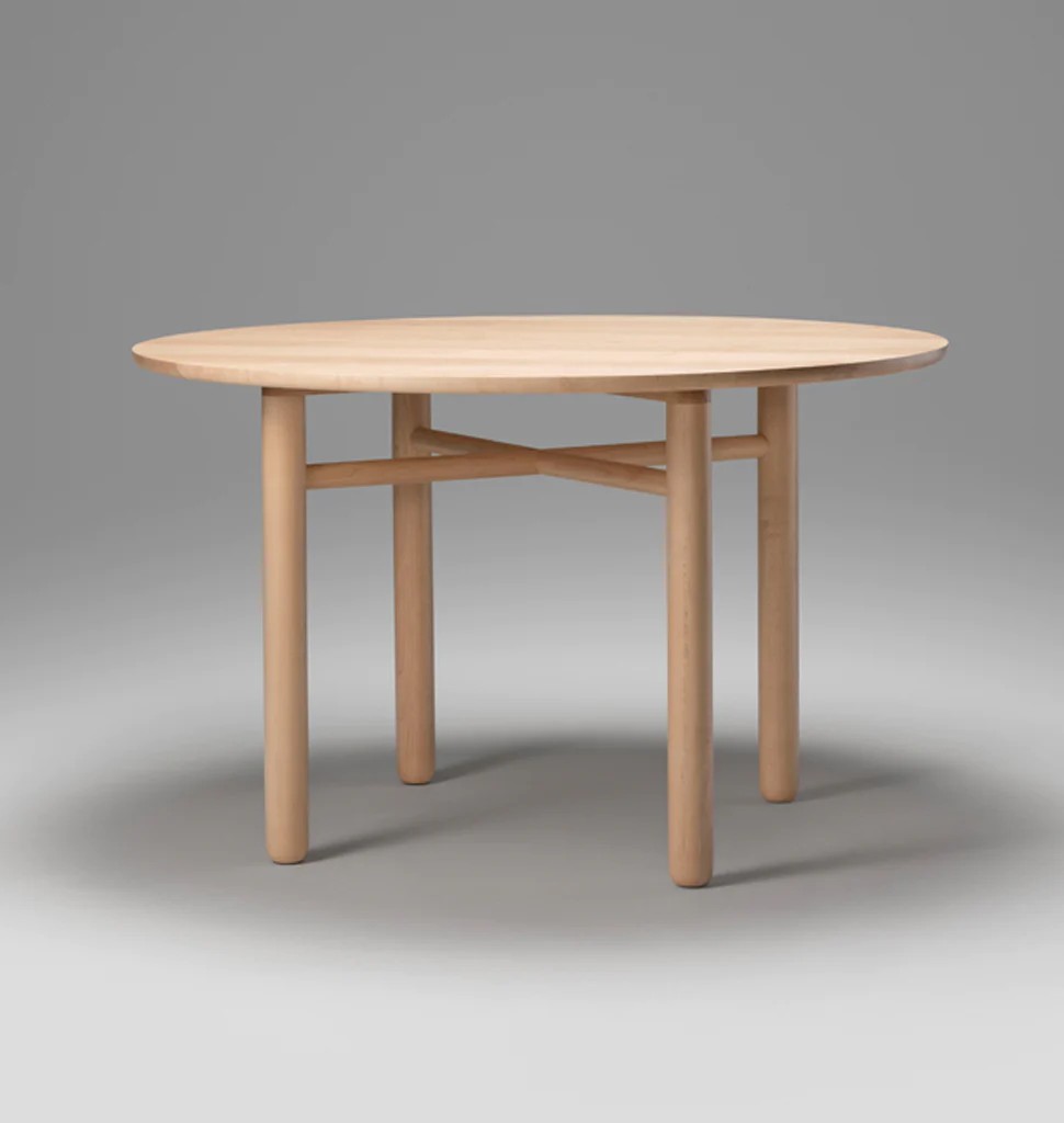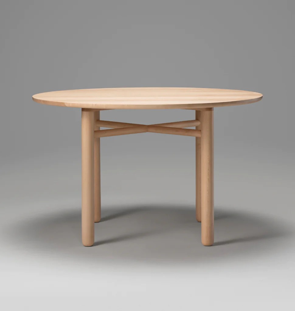 Refined and minimal, this round dining table has thickened, turned legs with a subtle, organic profile. The edge detail on the top is molded to the shape of the human hand and soft to the touch. Complex yet elegant wooden joinery gives this table a sense of craft and lightness. Campagna worked closely with Bowen Liu Studio in refining the joinery for Cross Bar Table. The final form owes much to the collaboration.