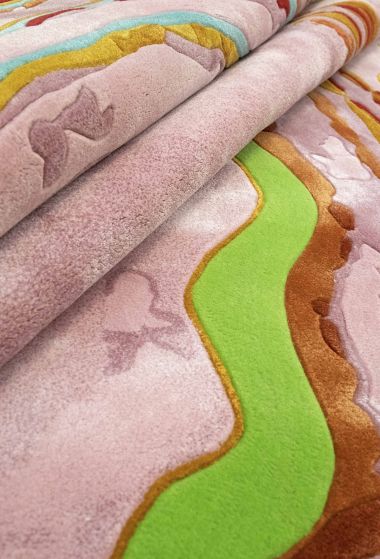 Agata Pink Moss is one of the exclusive limited edition unique rugs part of Sahrai's Artists Selection designed in collaboration with David Elia and inspired by the mythical Brazilian Agate stone known for its uniqueness - no two Agate stones are the same. This design features spirals stemming from an epi-center with candy pink being the dominant colour and complemented with matching shades.