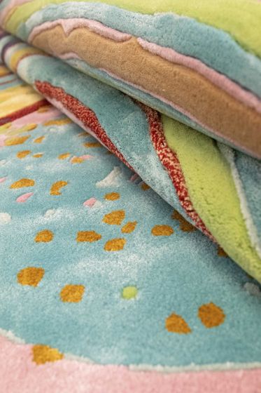 Agata Rose Laguna is one of the exclusive limited edition colourful rugs part of Sahrai's Artists Selection designed in collaboration with David Elia and inspired by the mythical Brazilian Agate stone known for its uniqueness - no two Agate stones are the same. This design features spirals of vivid colours stemming from an epi-center with pink as the dominating colour and covering the entire surface of the rug.