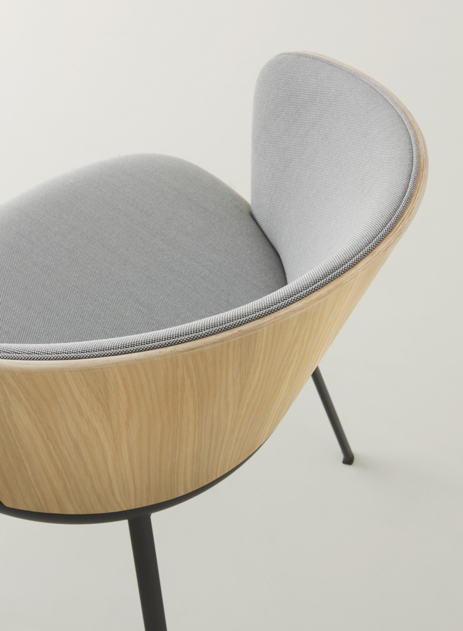 The feeling of comfort that the Billa armchair inspires is immediate. Characterized by its curved oak plywood backrest, Billa wraps you in a feeling of calm warmth guaranteed thanks to the padded panels upholstered in fabric or leather