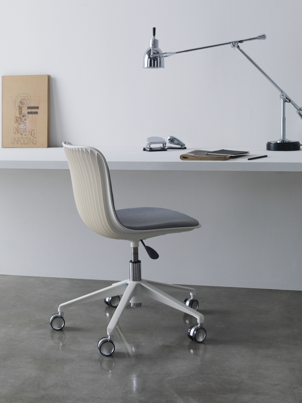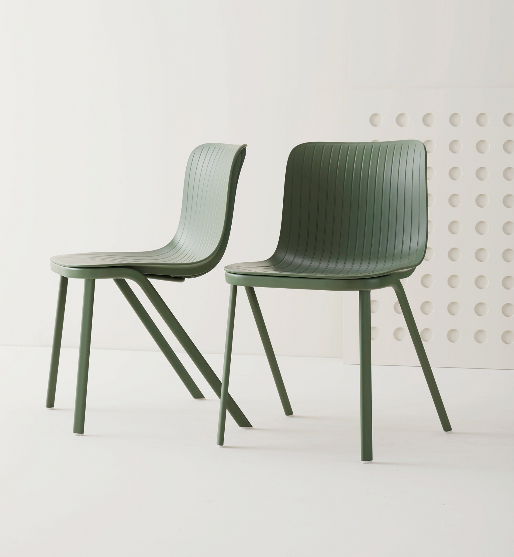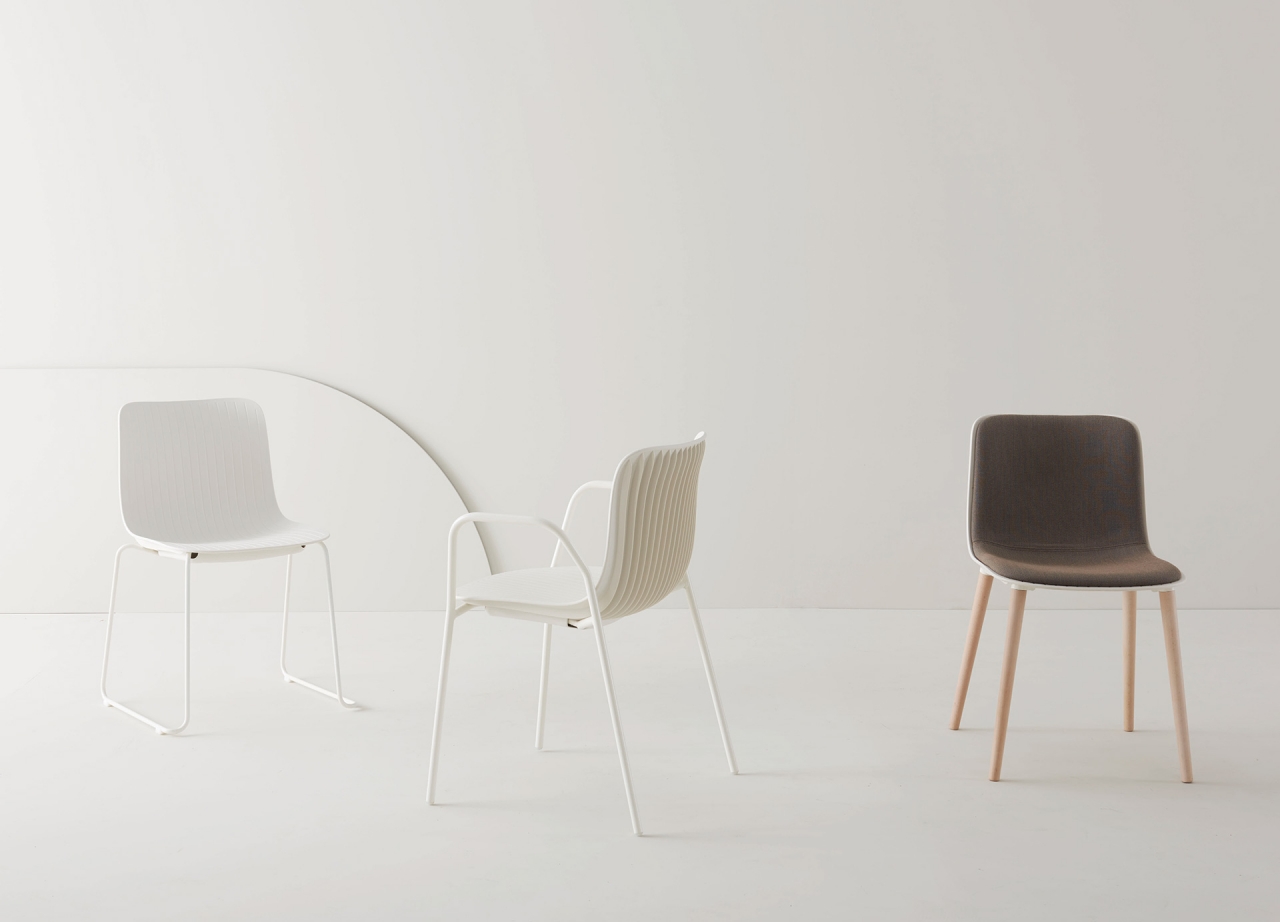 Dragonfly was born from the likes of the body of a dragonfly which is characterized by an imbalance of weight between the legs at the front and cantilevered tail. This observation inspired seating which thus appears to challenge gravity; the shell’s vertical ribbing mimics wings. Multi-functional bases may be paired with a variety of polypropylene shell colours for chairs and stools.