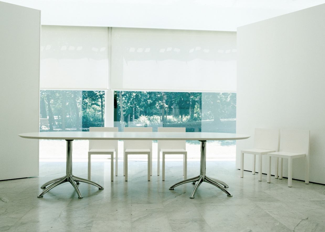 K Collection is a series of tables for any environment, indoor and outdoor. Characterized by a base in die-cast aluminium with two to five spokes and one or two central columns. Available in different heights, K Collection offers the option of numerous top shapes and sizes.