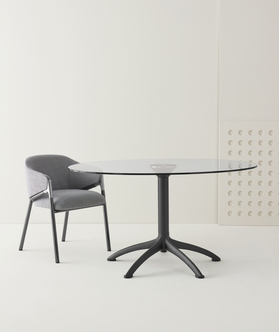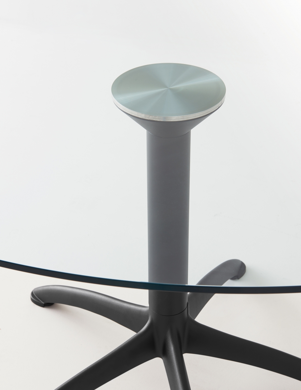 K Collection is a series of tables for any environment, indoor and outdoor. Characterized by a base in die-cast aluminium with two to five spokes and one or two central columns. Available in different heights, K Collection offers the option of numerous top shapes and sizes.
