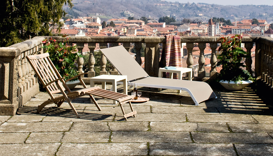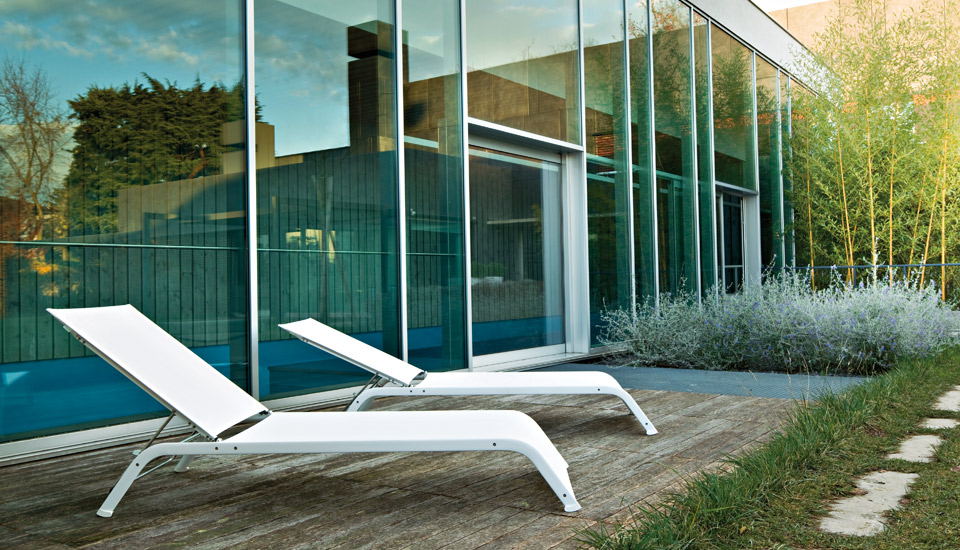The structure is made of anodized aluminium for outdoor use: deck chairs and lounge chairs with the seat area made of Batyline? and available in various colours.