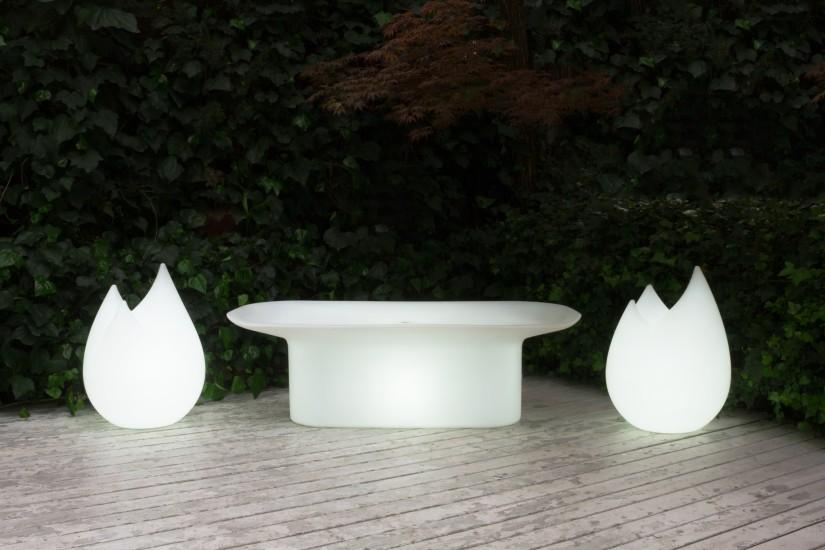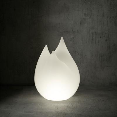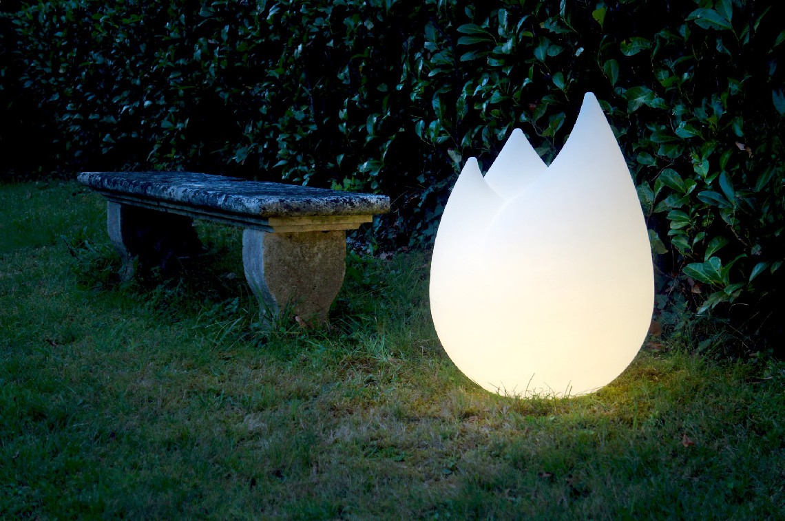 Flame is the new outdoor floor lamp in Serralunga's category of sculptural outdoor lighting collection. Its design recalls the archetypal form of a flame, evoking the primordial connection between light and fire. Its soft and sensual shape creates a play of shadows, reiterating the vibrating image of an archaic flame, suspended in a frame frozen in time. Whether installed in a garden, on the beach or in a chalet in the mountains or in a lounge room, Flame, a modern lamp designed by Sebastian Bergne, defines, enriches and encloses a space around itself. Ritual.