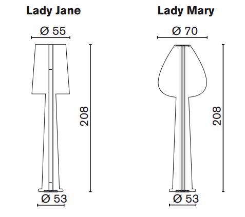 The Lady Jane and Lady Mary floor lamps are over 2 metres high and are awe-inspiring, theatrical objects.