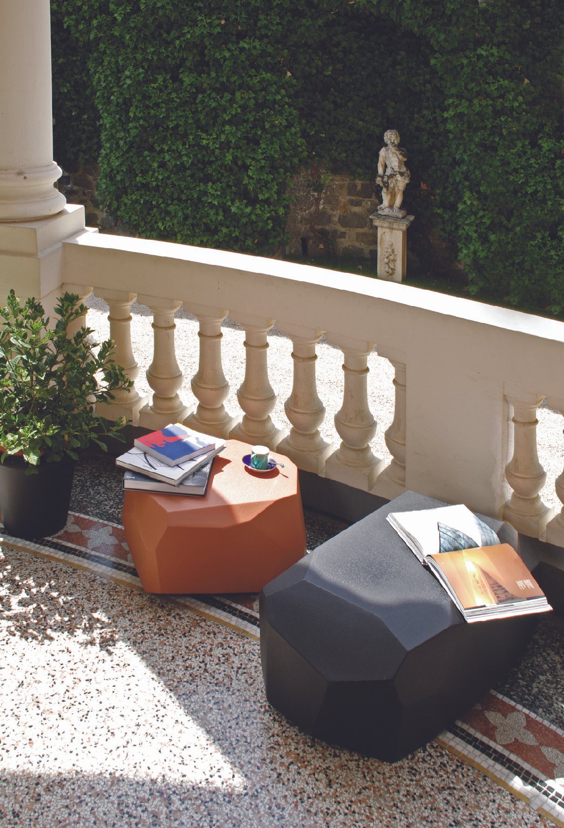 Meteor can be used as an informal garden bench, in various versions and sizes, for setting up outdoor spaces, even large ones, and gardens and for decorating terraces. Meteor is also an object of Italian interior design and can be a single object or a garden bench alongside more traditional pieces of contemporary furniture, in the set-up of shops and public spaces."