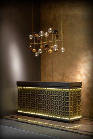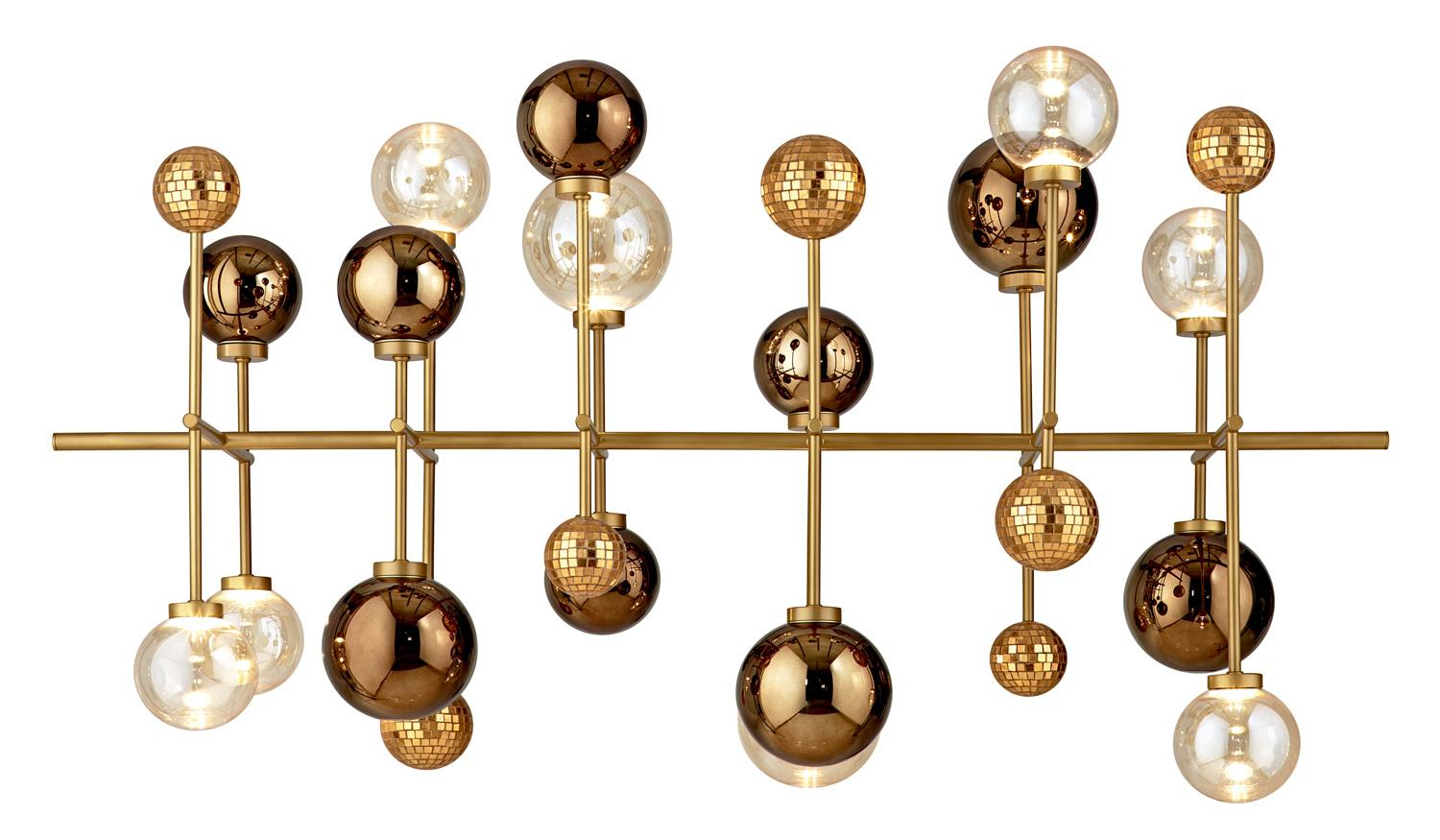 Glass spheres of various colours, finely worked, shape the light through transparency.