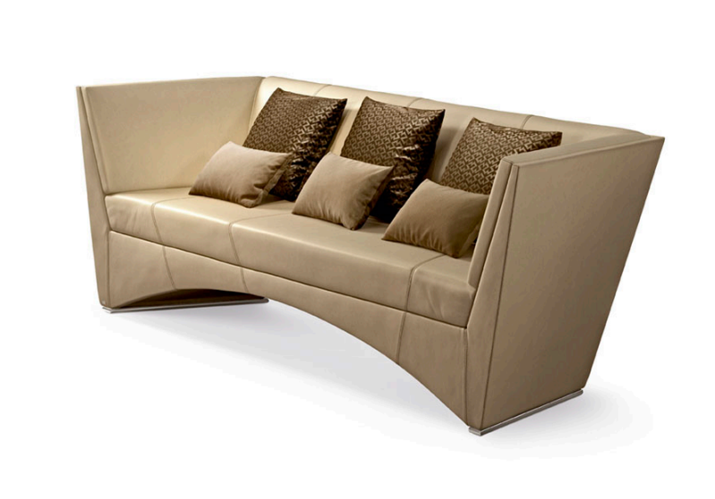 Sofa, frame made of solid timber and plywood. Variable densities polyurethane foam padding. Polished stainless steel feet. 50x50 cm and 50x25 cm mixed duck feather pillows recommended (refer to pillow section).