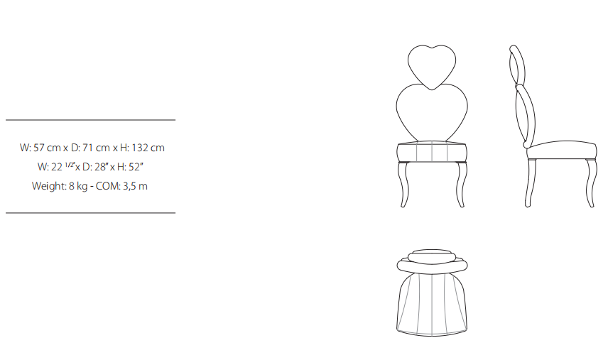 Chair with solid timber and plywood frame. Polyurethane foam padded seat and back. Leather or fabric upholstered legs.