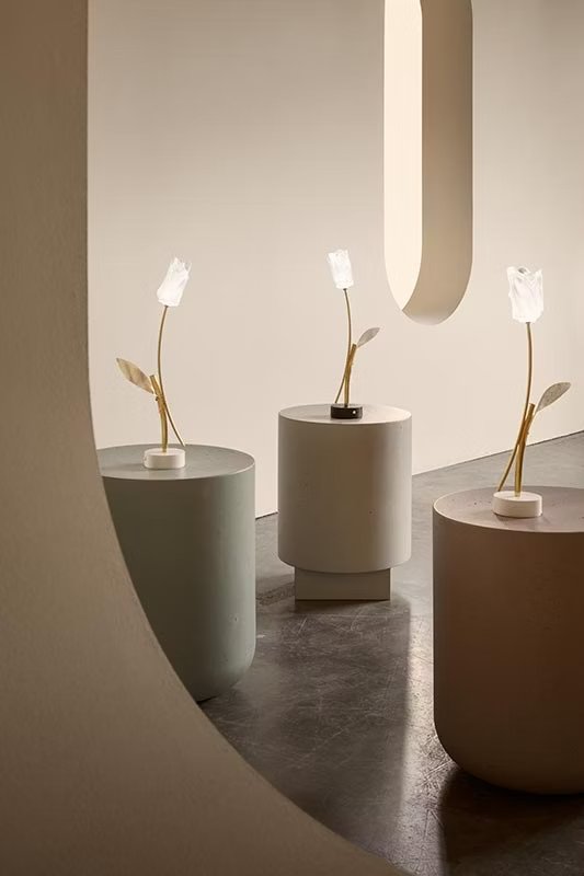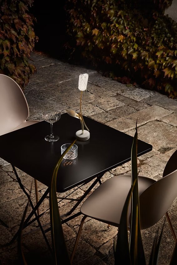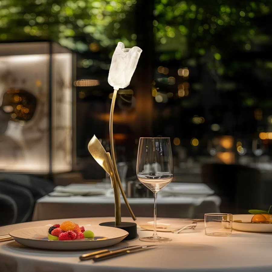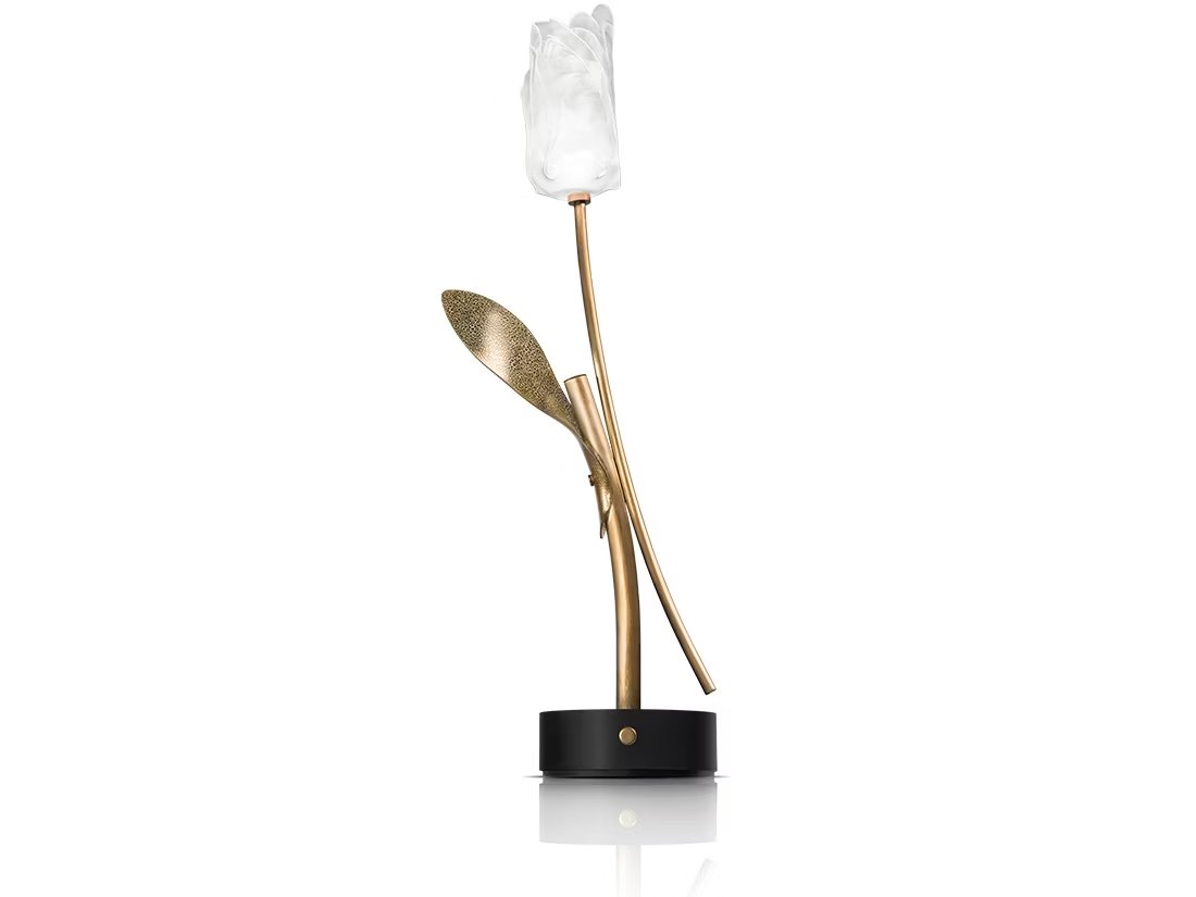 Imaginative, elegant, weightless. Tulip literally adorns your table with an elegant blossom that have been hand molded according to Slamp’s methods, making each unique. The base available in two finishings, white and black, holds an anodized aluminum stem with a precious gold cracklé leaf at side adorn the bloom. Dimmable LED light sources are included and can be replaced autonomously.