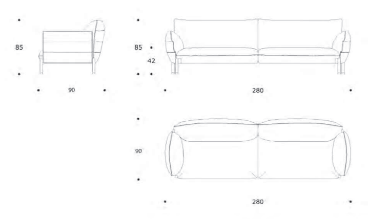 Dimensioni : larghezza 280 cm, altezza 85 cm, profondità 100 cm