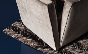 Poltrona imbottita fissa a densità differenziate, cuscino di seduta sfoderabile, n.1 cuscino 50×50 con nervetto.