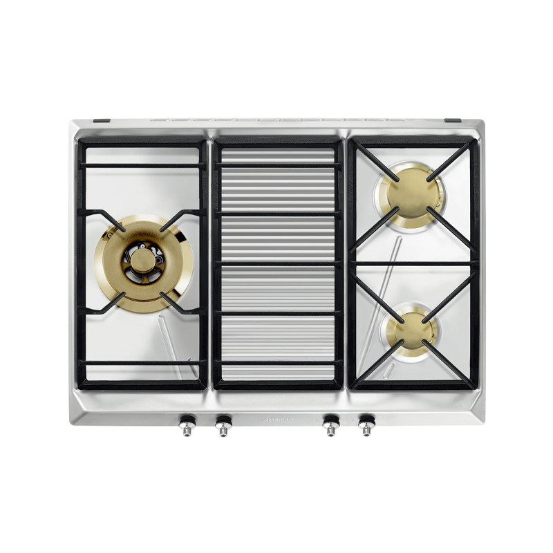 Classic/ 經典系列,70cm 嵌入式 3 眼燃氣灶具,1 級能效,拉絲不銹鋼,鑄鐵鍋架,全銅爐頭組件