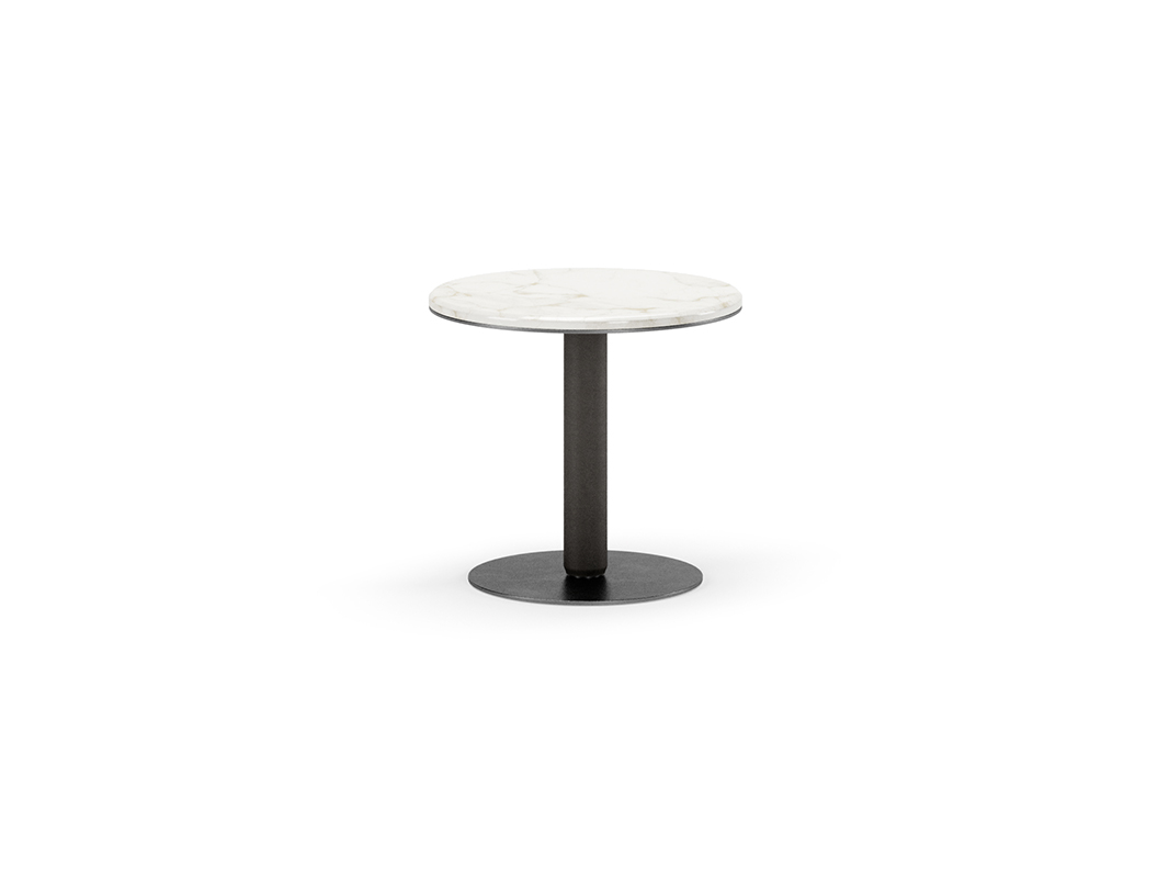 TAVOLINO SERVETTO ALTO,TOP IN MARMO, GAMBA CON CALZA IN PELLE, BASE IN METALLO