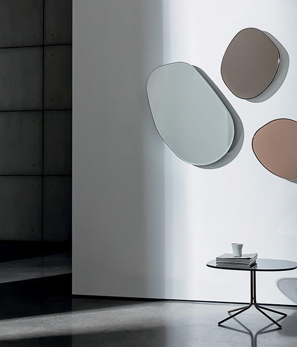 Nello spessore 15 mm lo specchio è disponibile anche nelle fi niture bronzo e fumé.