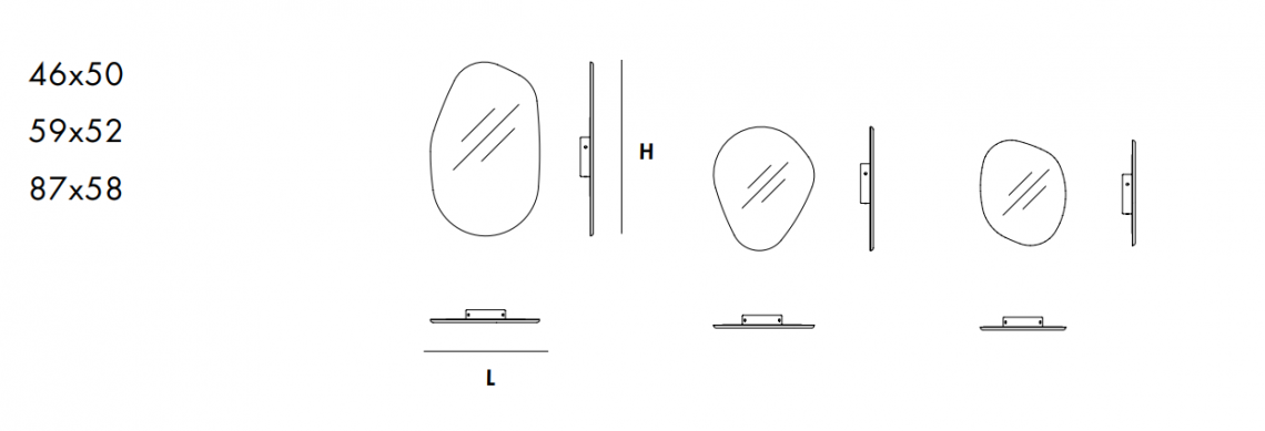 Vetro extrachiaro spessore 15 o 6 mm sagomato, molato e retro specchiato. Disponibile in varie misure. Il particolare pannello di sostegno dello specchio permette una rotazione di 360°.