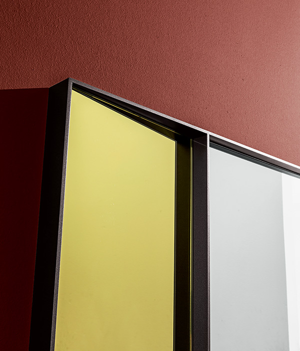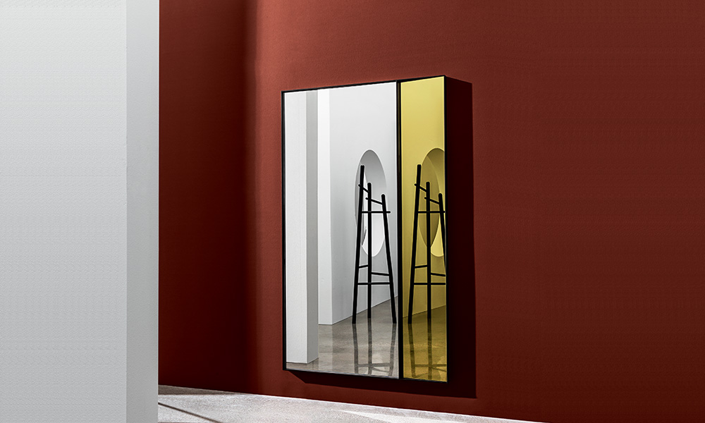 Campos è un nuovo concetto di specchiera. Combina una composizione grafica con diverse tonalità di specchio creando un elemento d’arredo che assume piena autonomia negli spazi architettonici, offrendo nuove prospettive di riflessione grazie allo specchio più piccolo inclinato.
