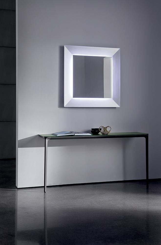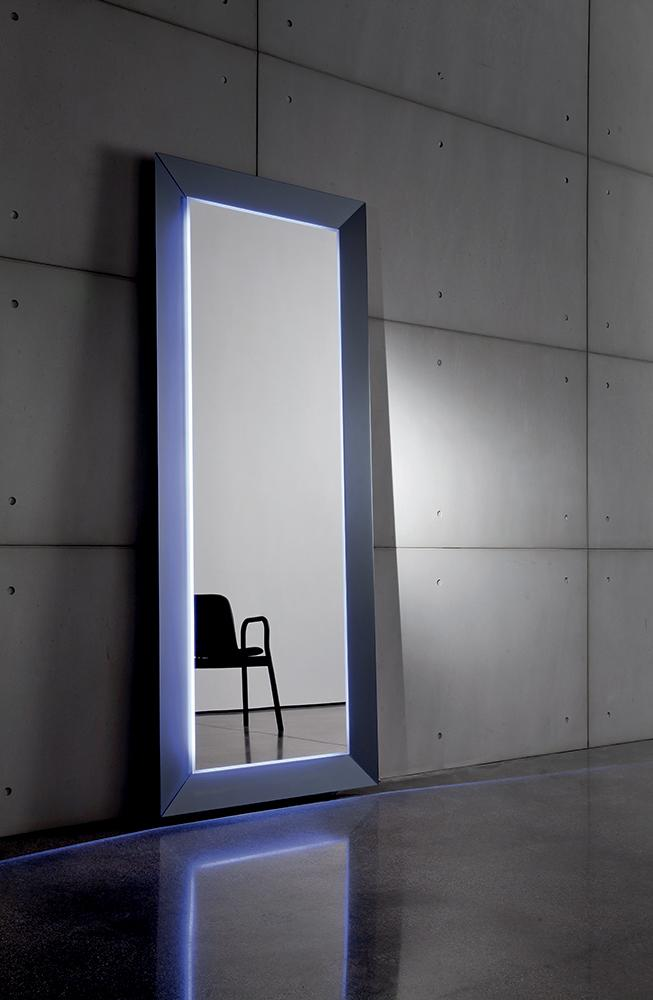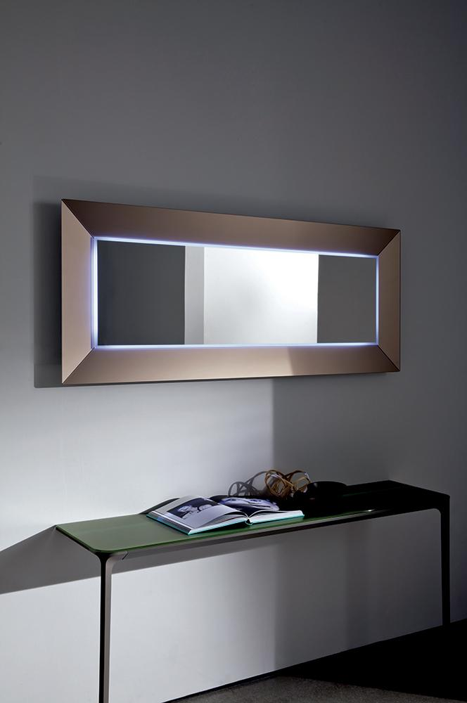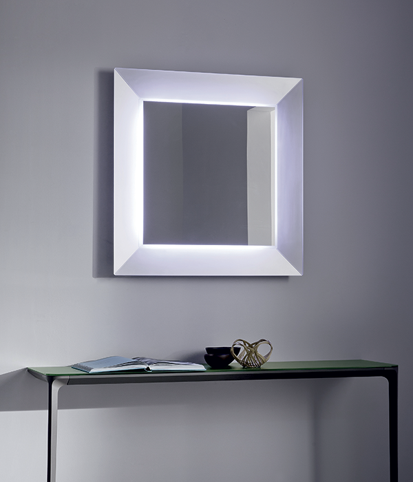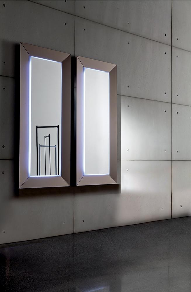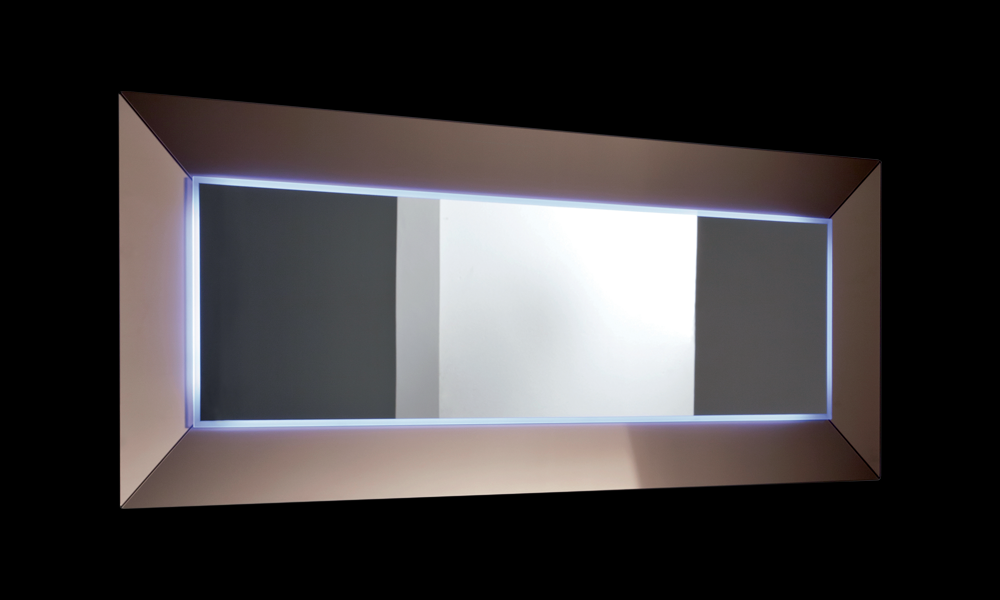 Denver Up aggiunge all’ampia superficie riflettente dello specchio, sollevato rispetto alla cornice, la magia della luce che si diffonde direttamente dal suo perimetro, creando un effetto molto particolare: sia nella versione verticale che in quella orizzontale.