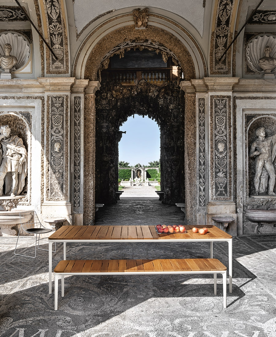 La versatile collezione di tavoli, tavolini, console e panche per lo spazio outdoor, riconosciuta per il suo design e la sua tecnologia, introduce un nuovo modo di interpretare l’arredo per esterni rendendolo distintivo e funzionale grazie al suo minimalismo estetico e alle pregiate finiture proposte che spaziano dal legno iroko fino alle ceramiche.