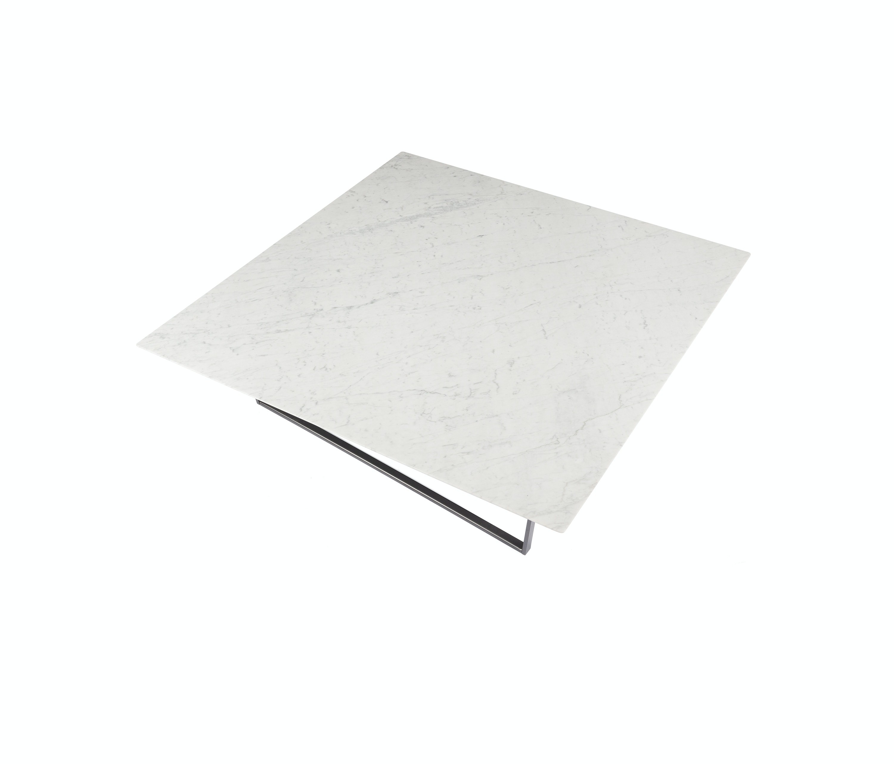 Designed in round and square versions of varying dimensions, the table tops were created to contrast with the sturdy iron frame, which is composed of slightly askew legs.