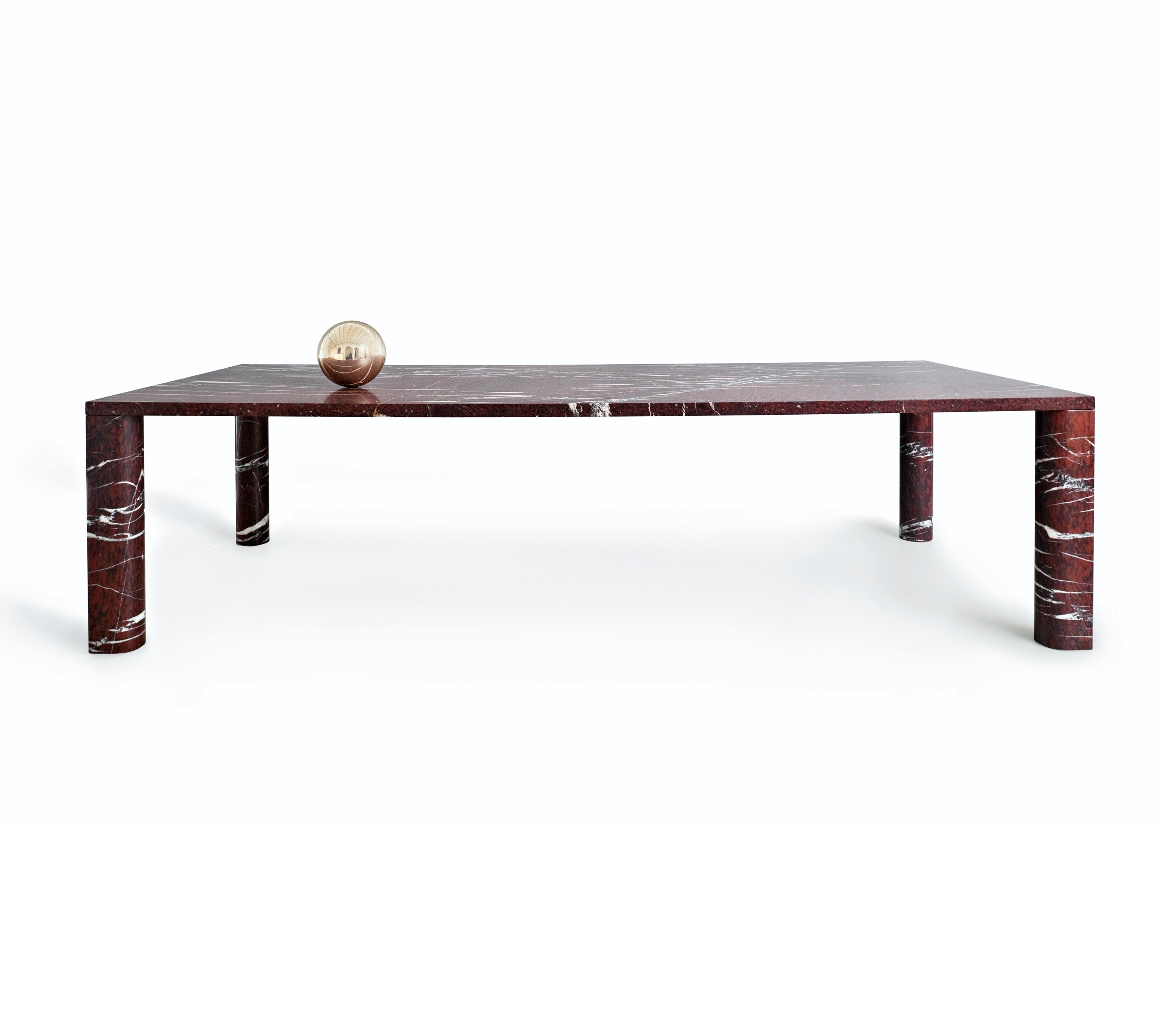 Instead of the highly polished look often associated with marble, the designer chose a matte finish so as to bring a more contemporary touch to the stone, highlighting their specific qualities through this subdued process.