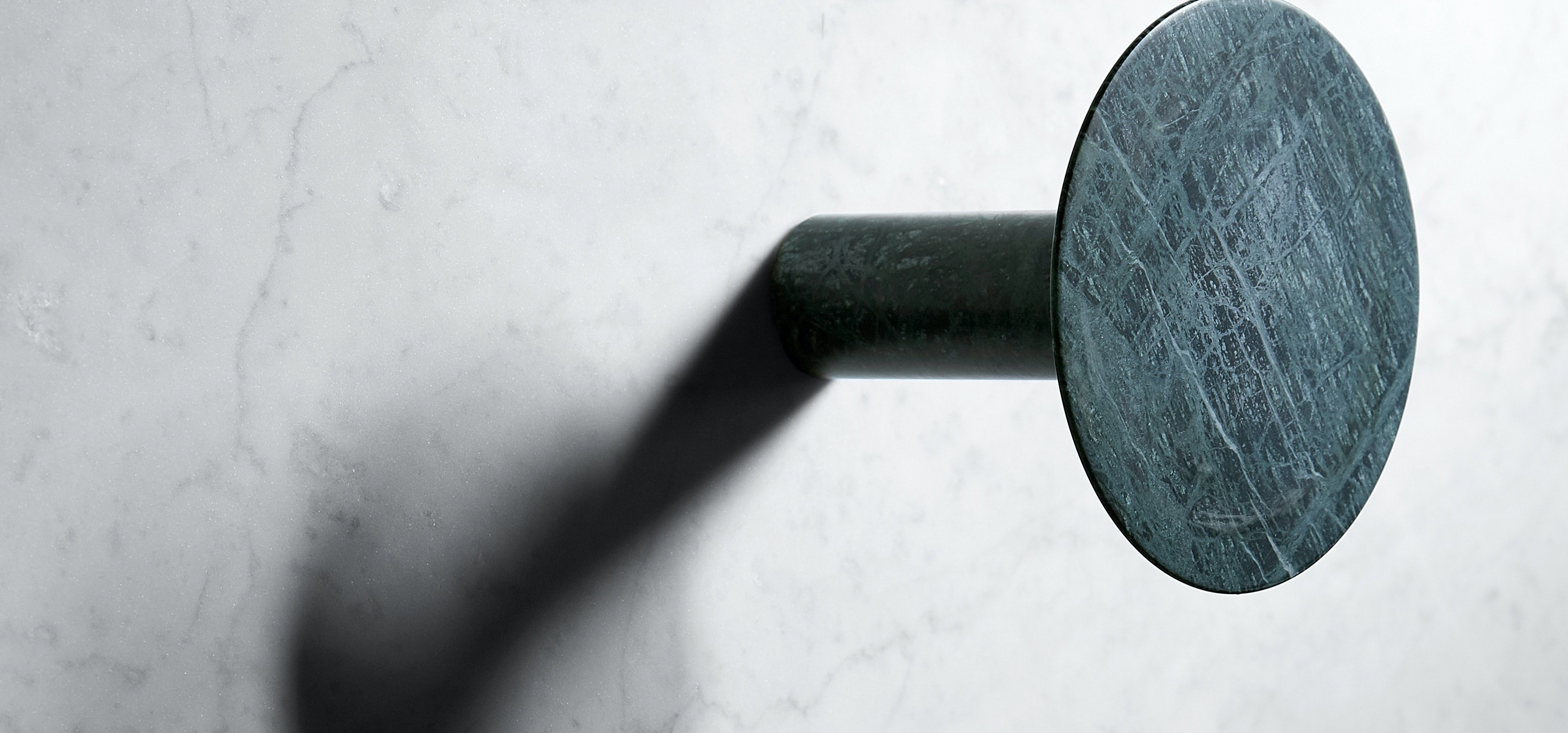 Available in a range of colours and stone types — white Bianco Carrara, creamy Botticino, opulent Verde Alpi and dapply grey Gris du Marais? — these understated hooks add a flourish of sophistication to any room.