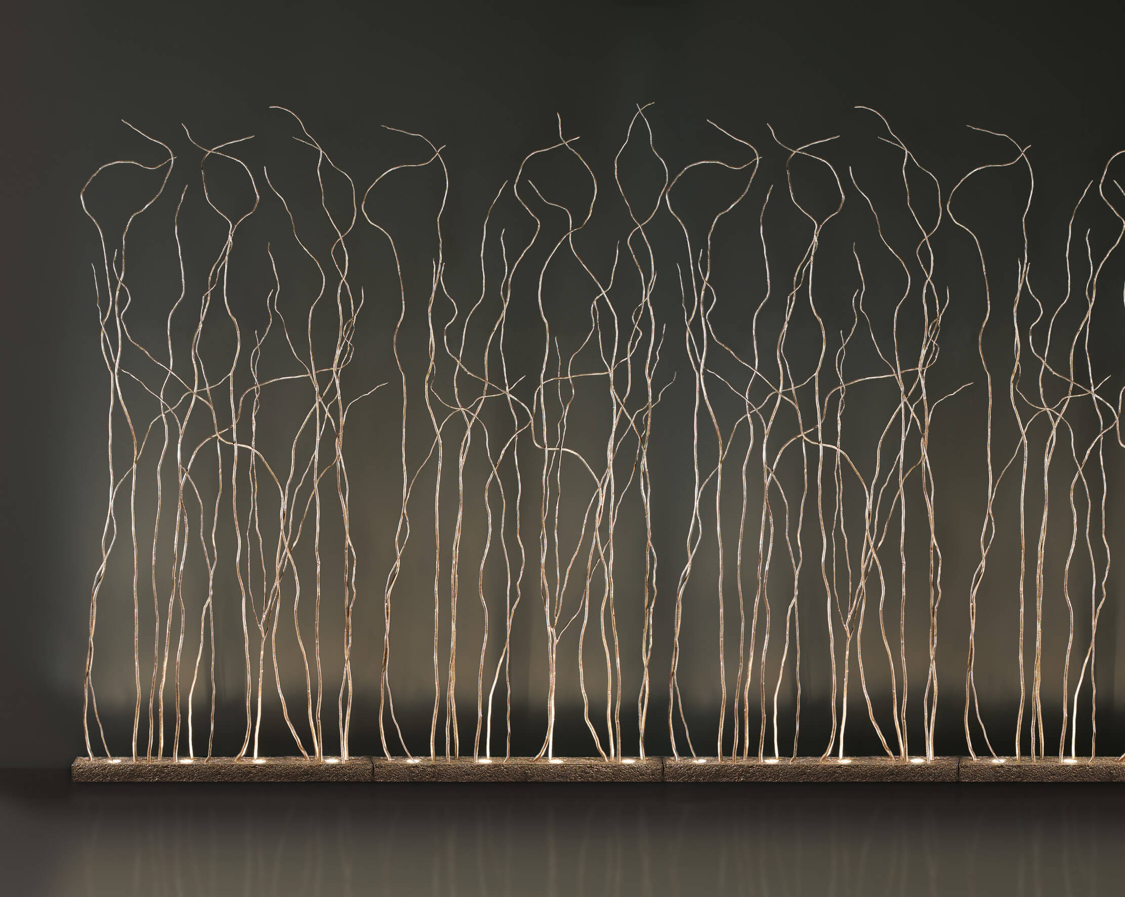 Raw and unpredictable like the air motion, the Wind collection is designed to have a strong connection to the random dance of the wind. The structure follows a minimalistic presentation, standing as a heavy sculpture of bronze that ensures a patterned game of light and shadow through the architectural plans of a space. By its broad extent, yet eased in detail, this collection is a good bet in modernist environments.