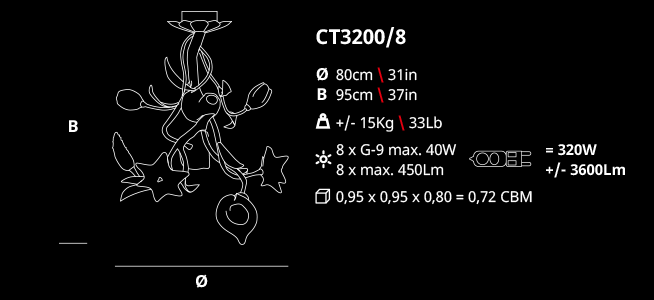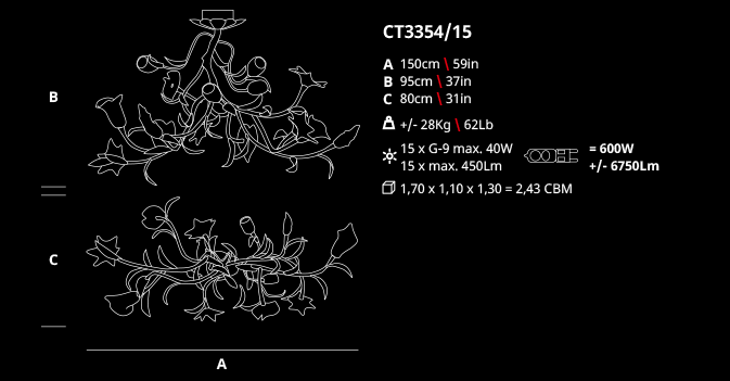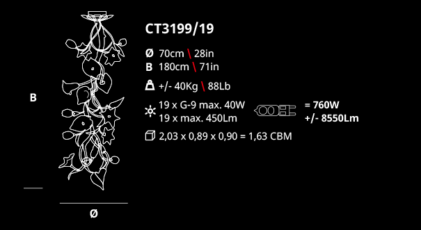 The spiral motion of the chandeliers transports us to an idea of a living garden.