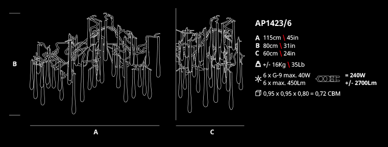 The Aqua Collection is an iconic set of the Serip family, both by its element of inspiration and by its inherent association with our identity, expressing a strong connection to our main inspiration source, nature. The bronze structure expands in entangled branches that lead to floating glass pieces, a characteristic that concedes an airy touch together with its delicate and elegant look, concepts visible in the smallest detail of the glass drops. Through several chromatic choices and design options, the Aqua Collection presents itself as an exquisite nature-inspired piece, perfect for any concept.