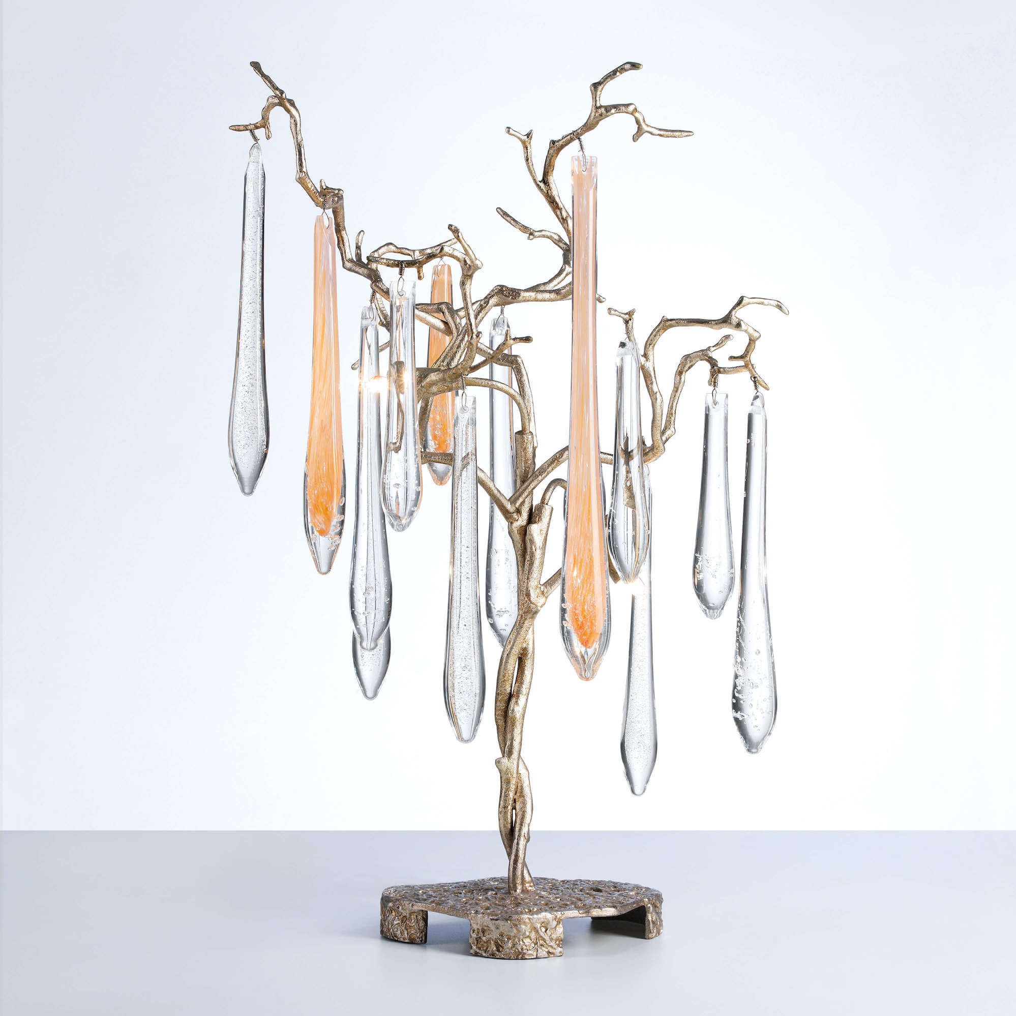 The Aqua Collection is an iconic set of the Serip family, both by its element of inspiration and by its inherent association with our identity, expressing a strong connection to our main inspiration source, nature. The bronze structure expands in entangled branches that lead to floating glass pieces, a characteristic that concedes an airy touch together with its delicate and elegant look, concepts visible in the smallest detail of the glass drops. Through several chromatic choices and design options, the Aqua Collection presents itself as an exquisite nature-inspired piece, perfect for any concept.
