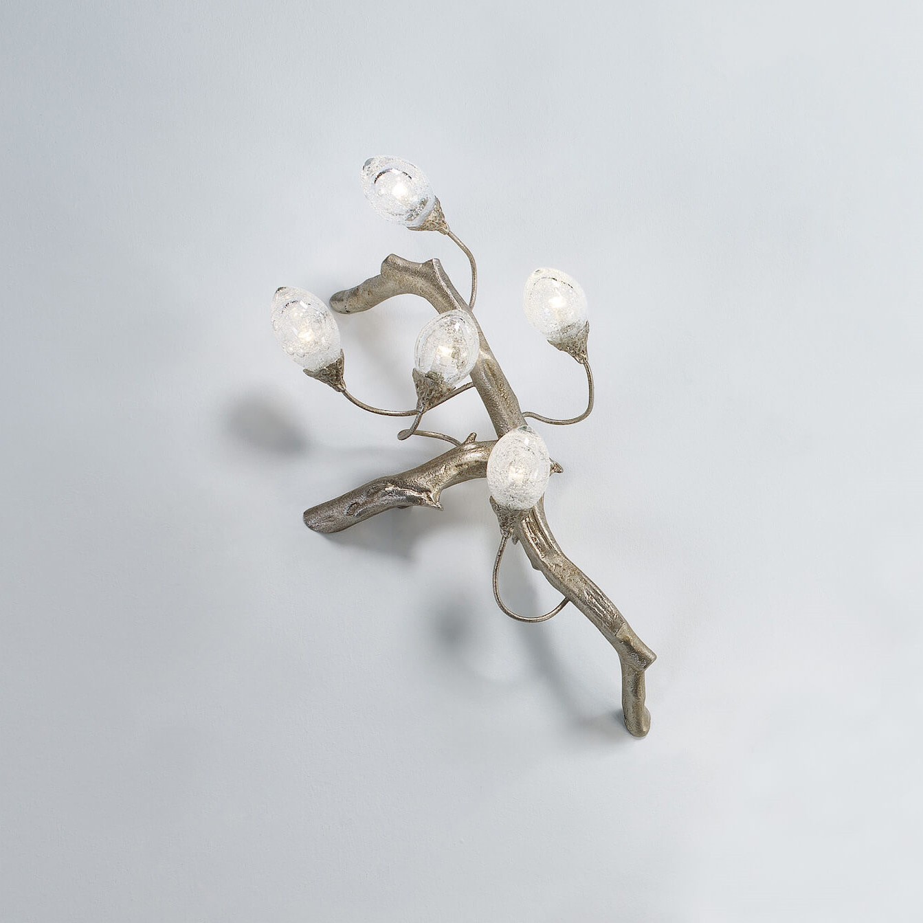 Lotus design follows the inherent evolutionary disposition of an organism, proposing a spiral arrangement almost like a living sculpture of motion and growing light sources. The egg-shaped glass pieces emit light to involve the entire piece as a single organic silhouette, a Serip trademark throughout all lighting designs, revealing an interesting glass work that includes bubbles in each piece - factor that confers unique characteristics to the light emission.