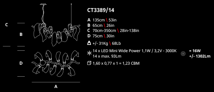 Ideal for: Areas of modern and contemporary interior style, suitable for pieces of great prominence and highlight.