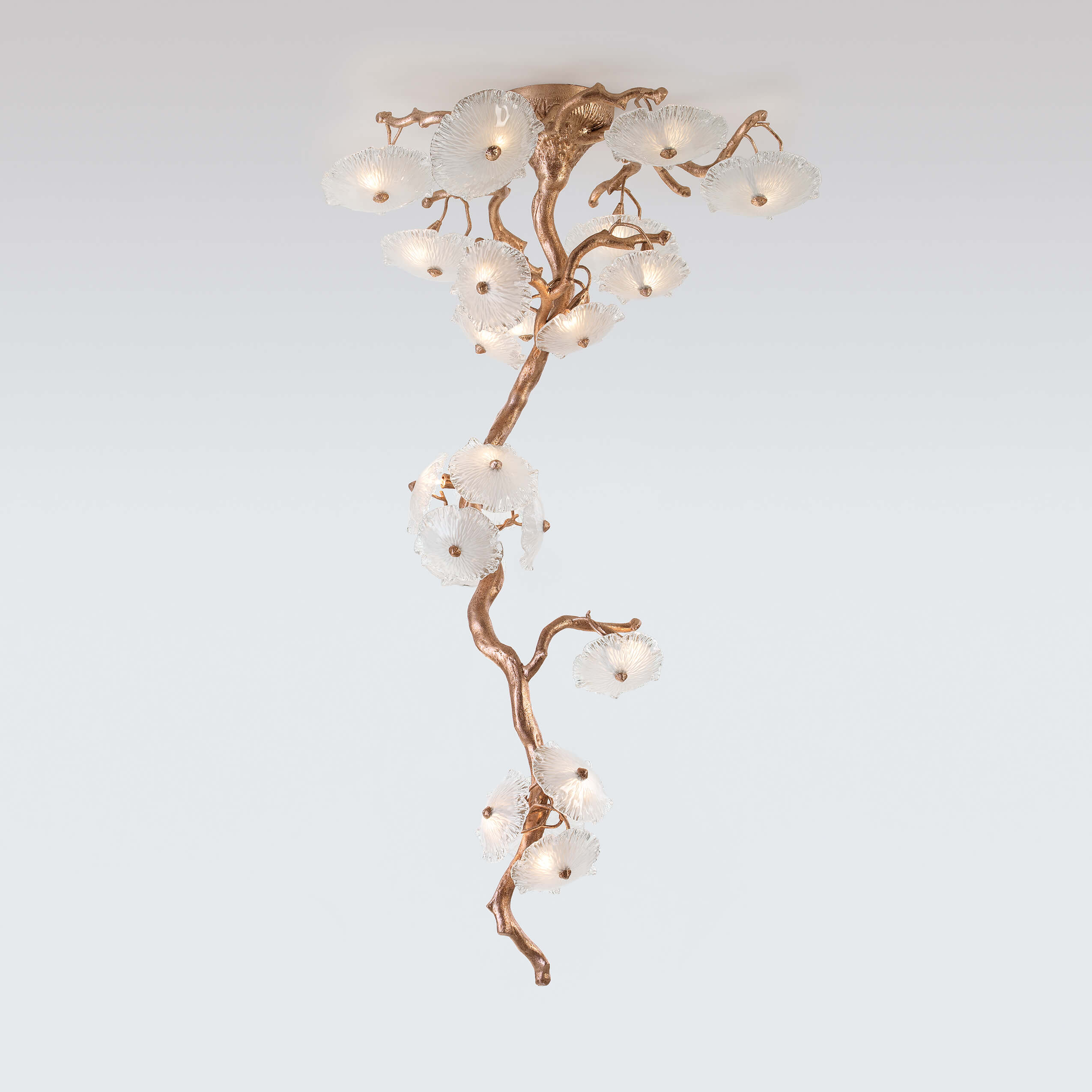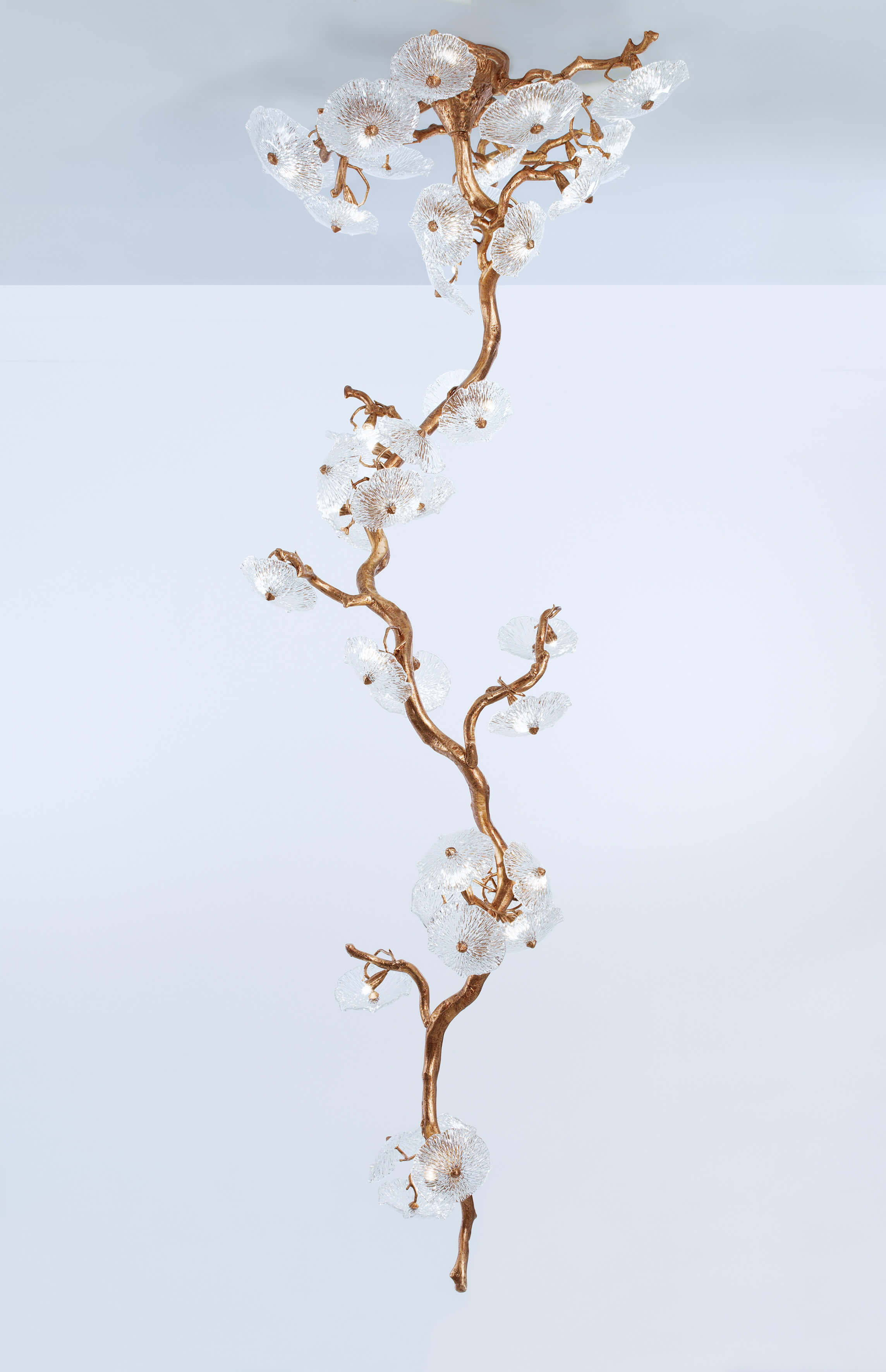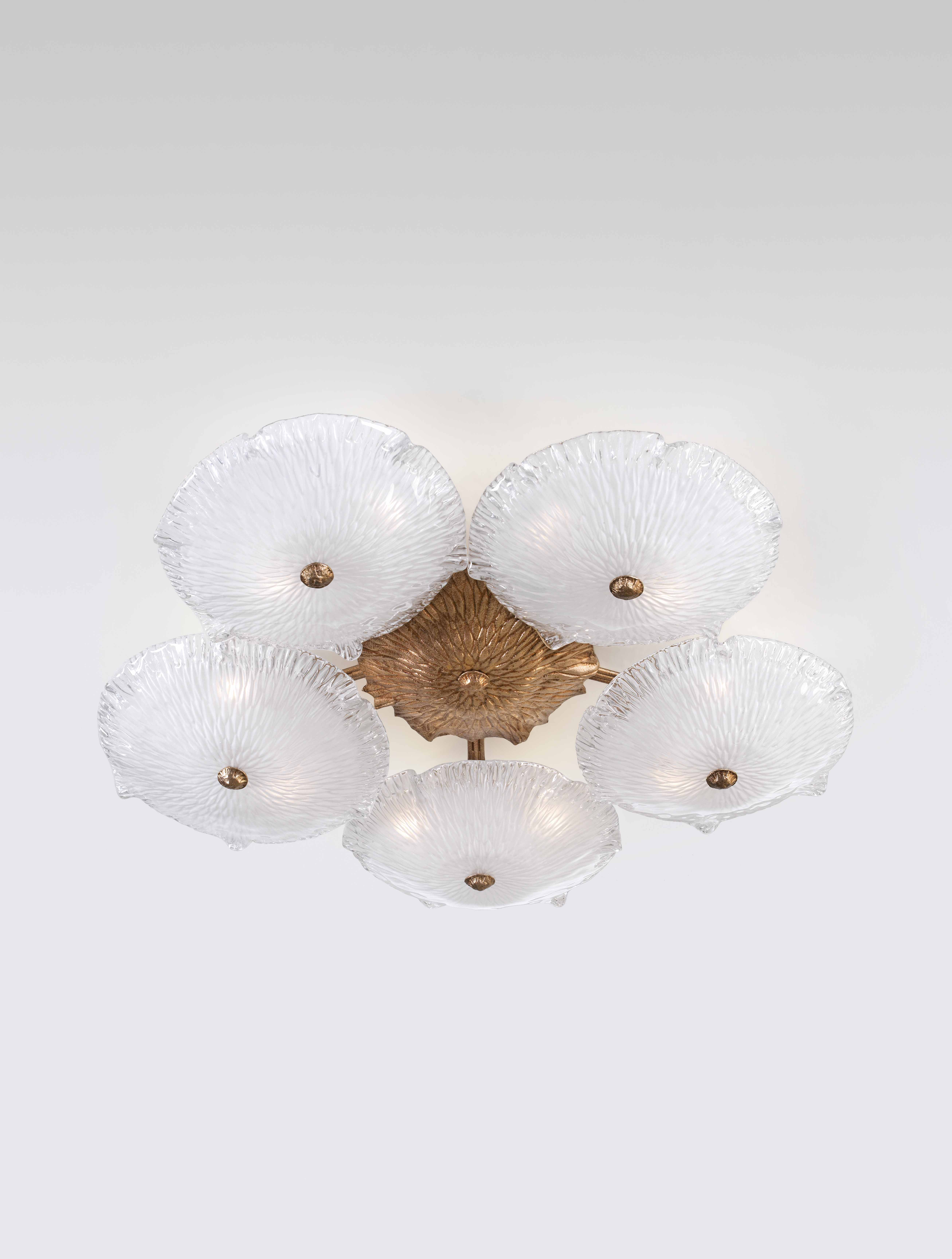 Beyond its particular dense structure and closed shape in some designs, it seeks an uncanny levitating sense, allowing multiple perspectives through the carefully crafted Murano glass pieces. Through the glass specifications, the Nenufar achieves diffuse lighting providing an alluring romantic sense, reminiscent of the natural beauty of nature.