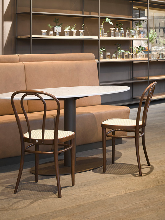 First manufactured in 1876, model no. 18 with the striking “hairpin” in its backrest returns to the Thonet portfolio with clear and reduced aesthetics as 218. Along with the chairs no. 14 and no. 56, chair no. 18 was one of the bestselling models of the Thonet production. Known as the "export chair" of Gebrüder Thonet, it was often sold for use in restaurants and cafés – especially in South America. Disassembled into its individual parts, 36 chairs fit into a sea chest, allowing large quantities of the chairs to be easily be sent on long journeys. No. 18 – now with the model no. 218 – is once again being produced in Frankenberg.