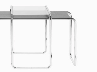 Long, narrow side tables like the B 10 are ideal for when you need to quickly put down an object – and find it again. They are also a decorative eye catcher in homes and offices. Today, their straight-lined aesthetics look familiar to us. Their inventor, Marcel Breuer, fought against overloaded and over-decorated living styles – still ubiquitous around 1920 – with his elegant, reduced tubular steel furniture. After initial experiments with tubular steel, a new material at the time, Marcel Breuer developed a series of small tables, including the long, narrow side table B 10. At the same time, he was working on an innovative chair design. With its strength and flexing properties, cold-bent tubular steel made such constructions possible. The first furniture made of tubular steel had legs and skids but did not yet make use of the flexing properties of tubular steel. Starting in 1928, Breuer began building prototypes of the cantilever chairs that we all know today.