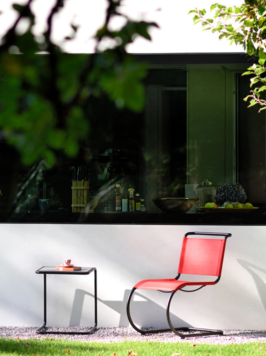 Technology becomes furniture; a striking invention becomes an elegant interior design object. Ludwig Mies van der Rohe was the first to provide the cantilever chair with aesthetic lightness and to relate it to its environment with curved lines. In the run-up to the Weissenhof Estate exhibition, which he organised, Mies van der Rohe became familiar with the principle of the cantilever chair thanks to Mart Stam. As new as this approach may have been, Mies van der Rohe was not impressed with its first implementation by Stam. He immediately answered the technological innovation with his own aesthetic solution, which he was able to present in 1927. The S 533 is one of the first cantilever chairs, and it defines the surrounding environment with its large, elegantly curved circular tubular steel form. The S 533 is characterized by an intentional restriction of materials used, the elegance of lines and the transparency in its effect.