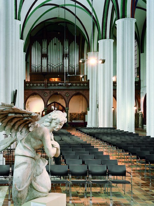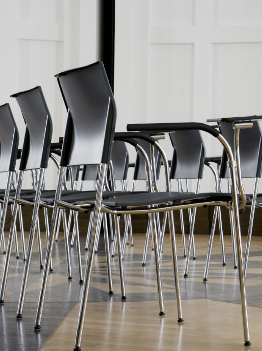Used by the thousands and successfully tested under the toughest conditions, these chairs can be found in trade fair halls, event halls, museums, churches, town halls and cafeterias. They fulfill all the requirements of mass seating: they can be stacked, easily linked, are easy to take care of and are very comfortable. The clever row linking mechanism (Thonet patent) is an especially useful feature. The frames can be connected without any extra parts. This system offers two economical advantages: the comfortable chair width of 58 cm has a row spacing requirement of only 53 cm. This allows more chairs to be positioned on a surface and handling the chairs is so simple that assembly and disassembly times are markedly reduced.