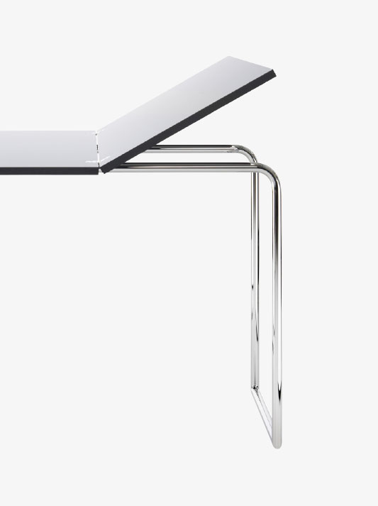 Console and table in one. The folding table B 109 was developed in an era when living rooms were much smaller than they are today. Folded up, it stands against the wall as a console with a depth of 45 cm. When needed, the panel is turned, unfolded and locked in place, resulting in a table with a tabletop size of 90 x 90 cm. B 109 is one of the tubular steel classics from the 1920s and 1930s. At the time, the collection by renowned architects was complemented with numerous in-house designs by Thonet.