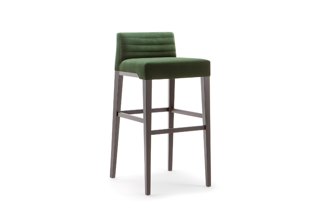 Memorie del '900 e rigore formale contemporaneo, convivono piacevolmentein un'ideale armonia fra il legno, il tessuto e il metallo.Lo sgabello Ginevra rappresenta un'ottima soluzione per arredare coneleganza ristoranti hotel. La cornice in legno massello, cosi come le gambe.racchiudono un sedile e uno schienale sapientemente imbottitj.in questa versione la seduta presenta un dettaglio forato sia nella parteinferiore che superiore dello schienale.