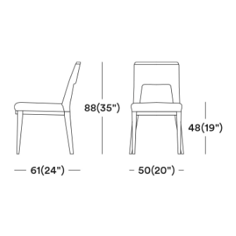 L'ampia apertura sullo schienale caratterizza l’estetica di questa seduta ela