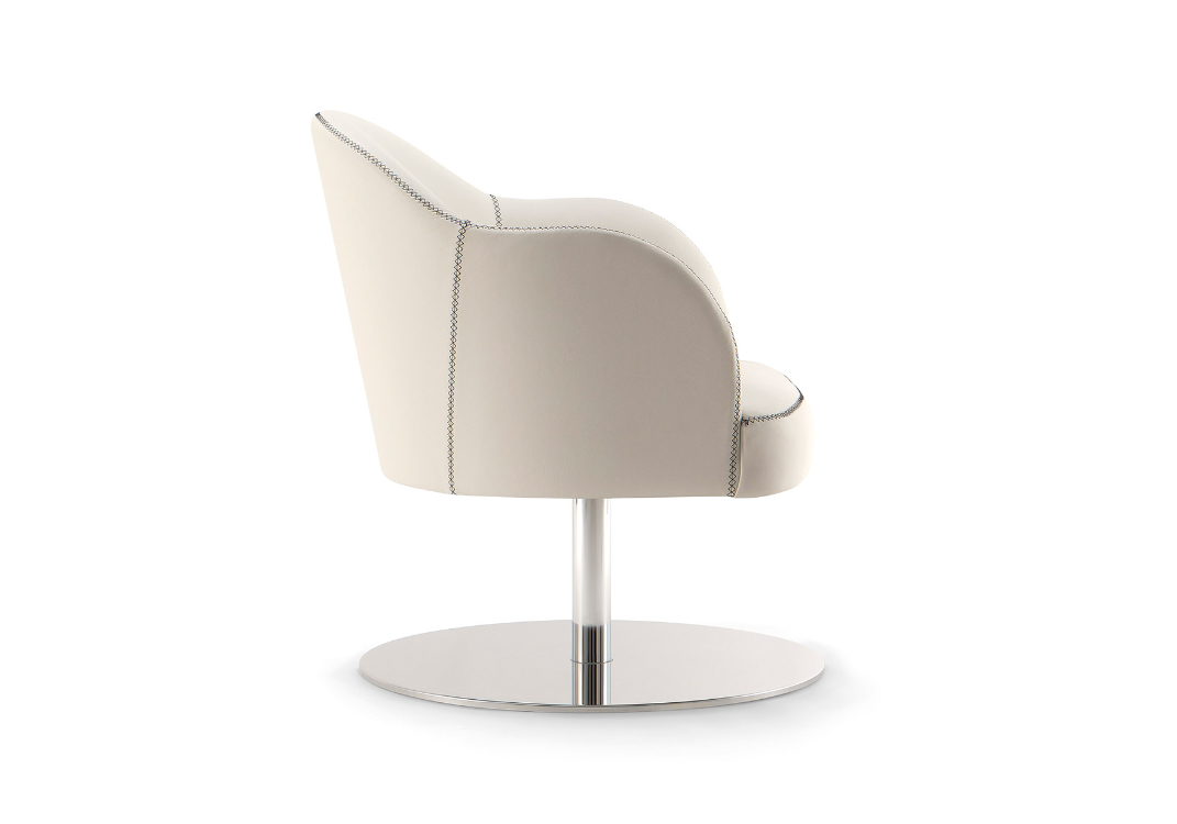 Perfettamente adatta ad ambienti eleganti e sofisticati, la poltrona dellacollezione Chicago racchiude, nelle sue linee dolci, comfort e design.Le cuciture a vista, di fattura artigianale ed in tonalita contrastante con ilrivestimento, creano un gioco grafico lungo i contorni delle imbottiture.La struttura portante, in metallo, prevede una moderna base a disco pieno.Grazie all'ampia gamma di tessuti selezionabili e alle diverse tinte legnodisponibili, questo prodotto di adatta facilmente ad ogni ambiente.
