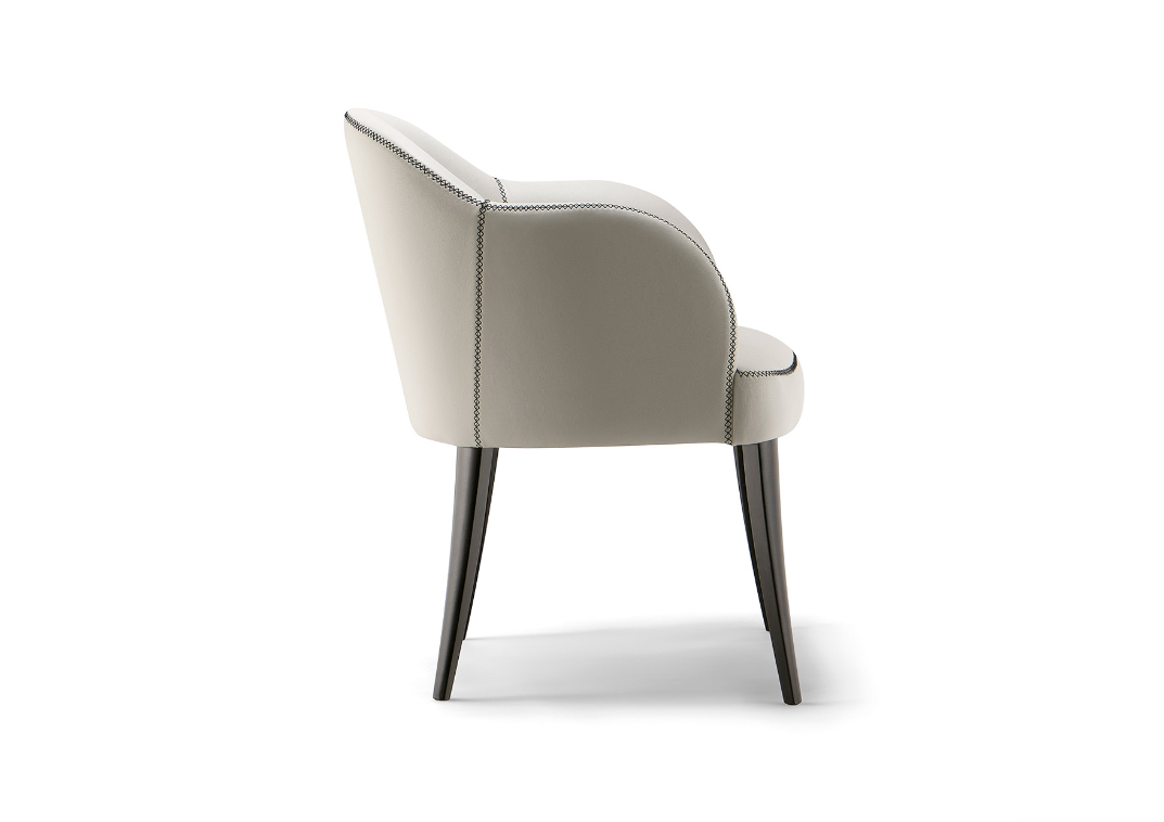 Perfettamente adatta ad ambienti eleganti e sofisticati, la poltrona dellacollezione Chicago racchiude, nelle sue linee dolci, comfort e design.Le cuciture a vista, di fattura artigianale ed in tonalita contrastante con ilrivestimento, creano un gioco grafico lungo i contorni delle imbottiture.Le gambe, realizzate interamente in legno massello, completano questaelegante seduta.
