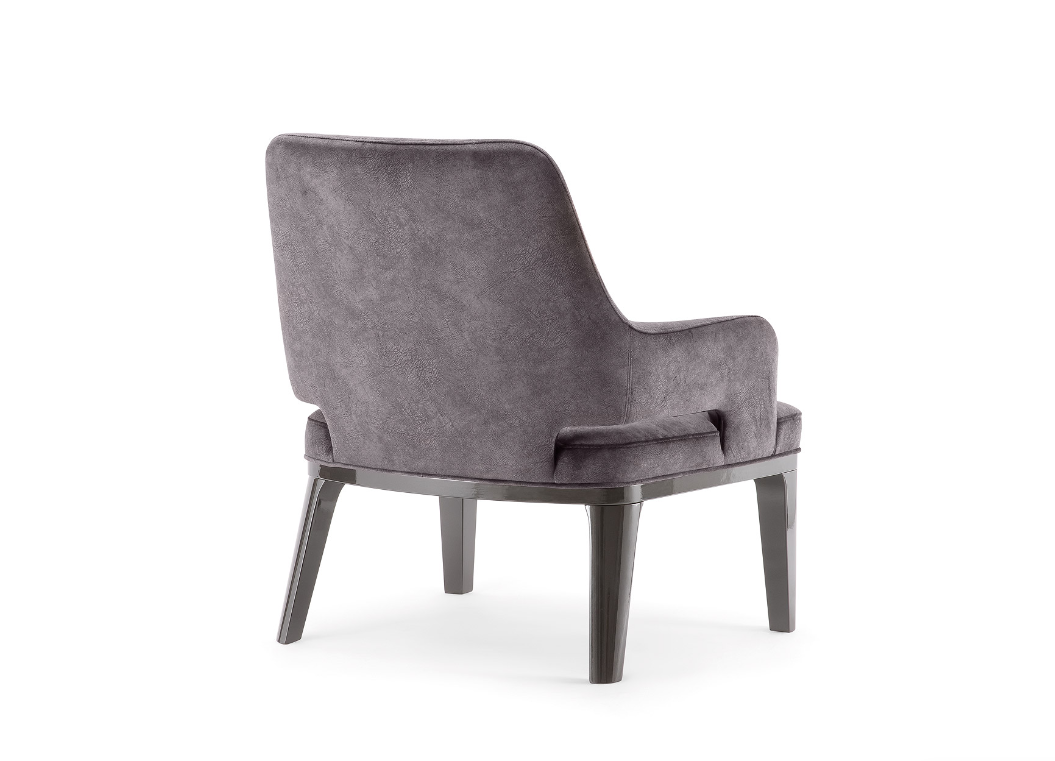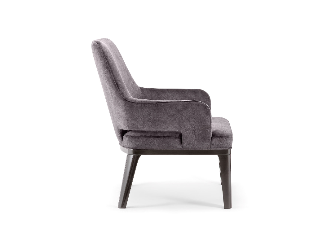 Linterazione tra morbide rotondita e linee decise dona un tocco di modernitae contemporaneita alla collezione.Una delle ultime nate, ma gia molto amata dai nostri clienti.il dettaglio in legno massello di faggio che, avvolge la seduta, dona eleganza eraffinatezza ad ogni ambiente.