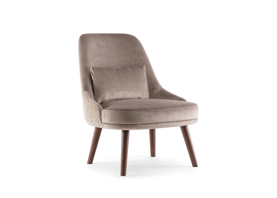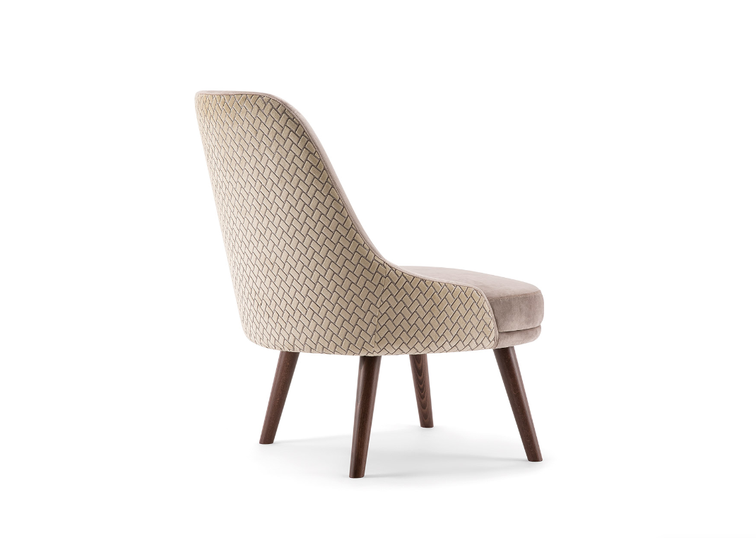La poltrona Zoe elegante e confortevole, perfetta per arredare ambienticontract. Lo schienale alto si curva verso i lati per cullare il cliente nella suaseduta profonda.lmbottito generosamente e dotato di un morbido cuscinorende la poltrona rilassante e confortevole. Disponibile in diverse soluzioni ditessuti e tinte legno per abbinarsi ad ogni ambiente.